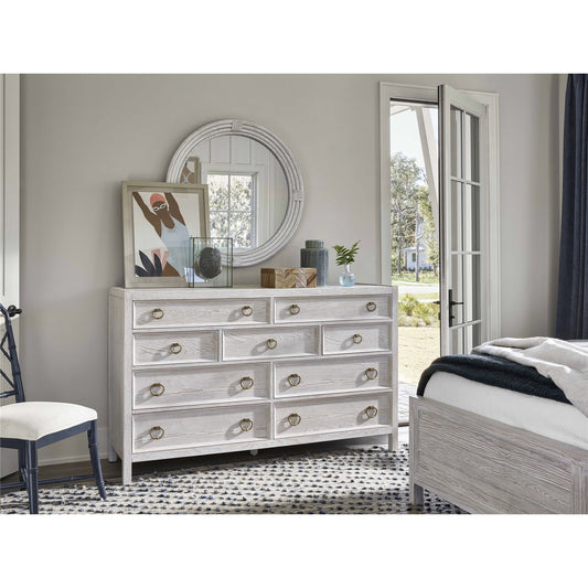 Grappa Whitewashed Wood & Raffia Wavy Nightstand