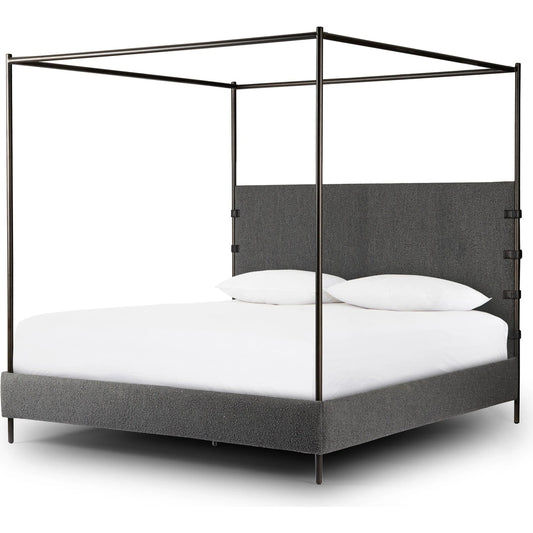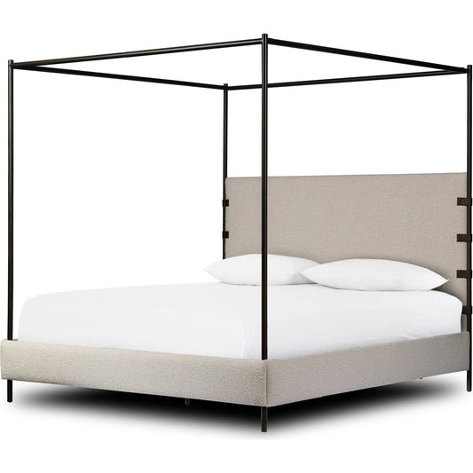 Emelia White Boucle Upholstered Wingback Platform Bed