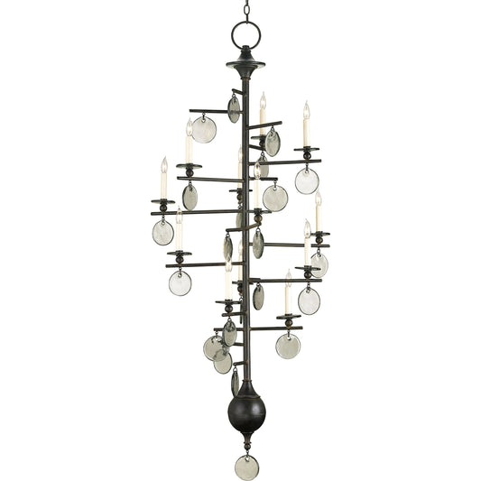 Churippu Magnolia & Tulip Glass Oblong Nineteen-Light Chandelier