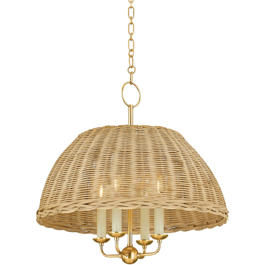 Thad 4-Light Natural Woven Rattan Dome Chandelier