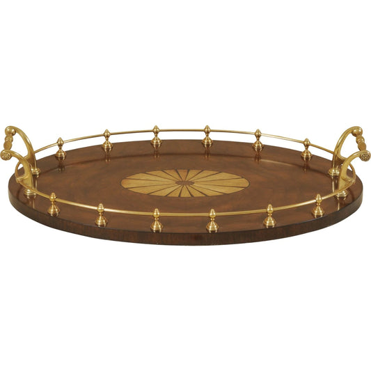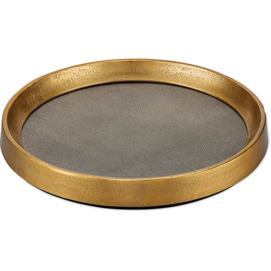 Jianna Oval Textured Antiqued Gold Tray with Handles