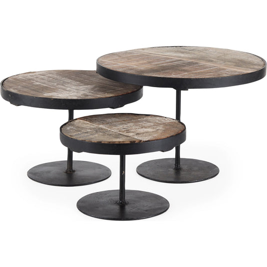 Lorenz Light Wood Metal Base Decorative Display Stands Set of Three