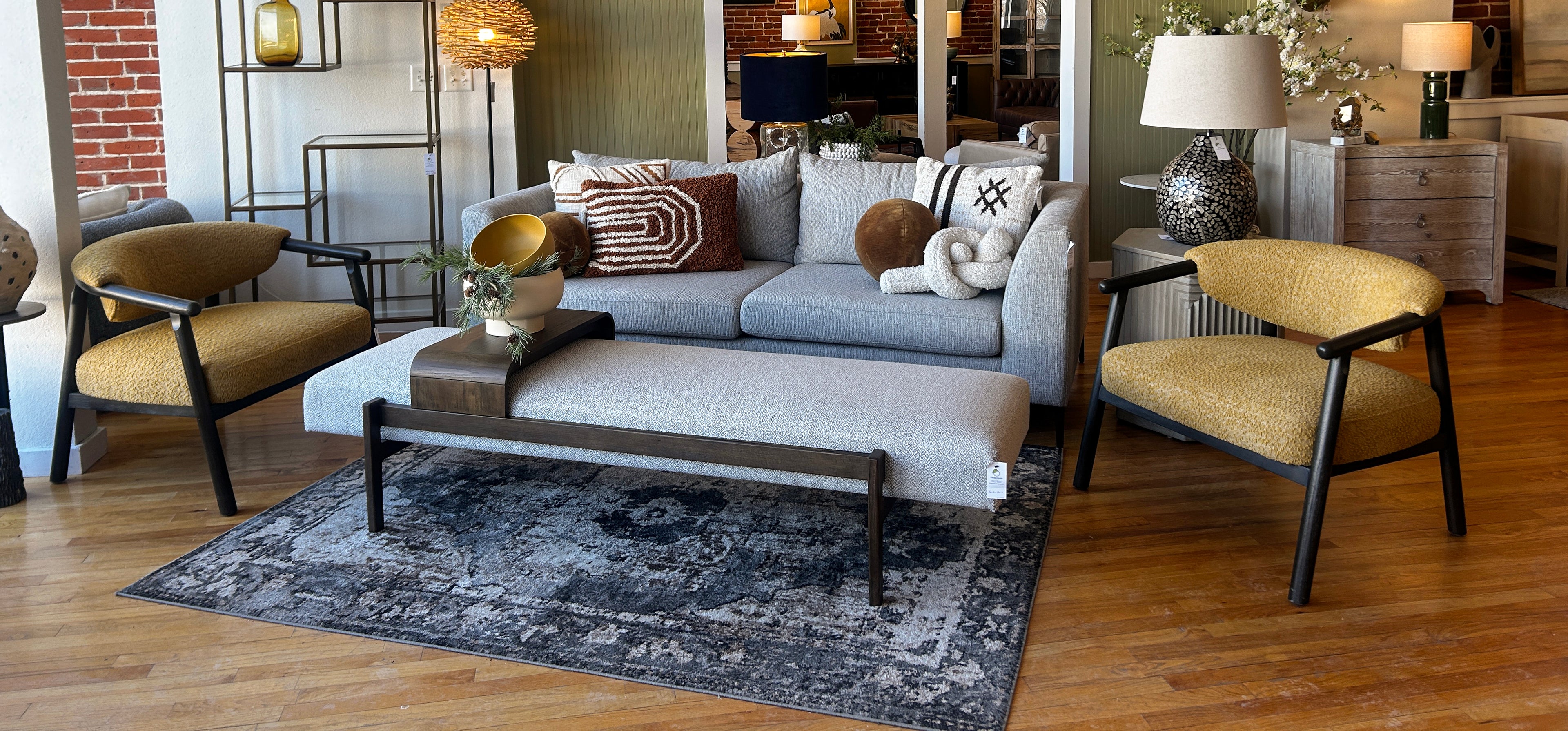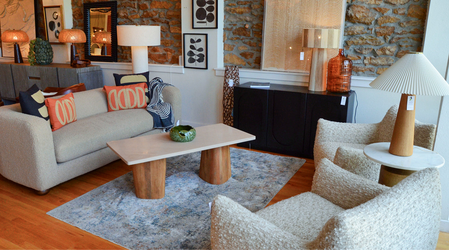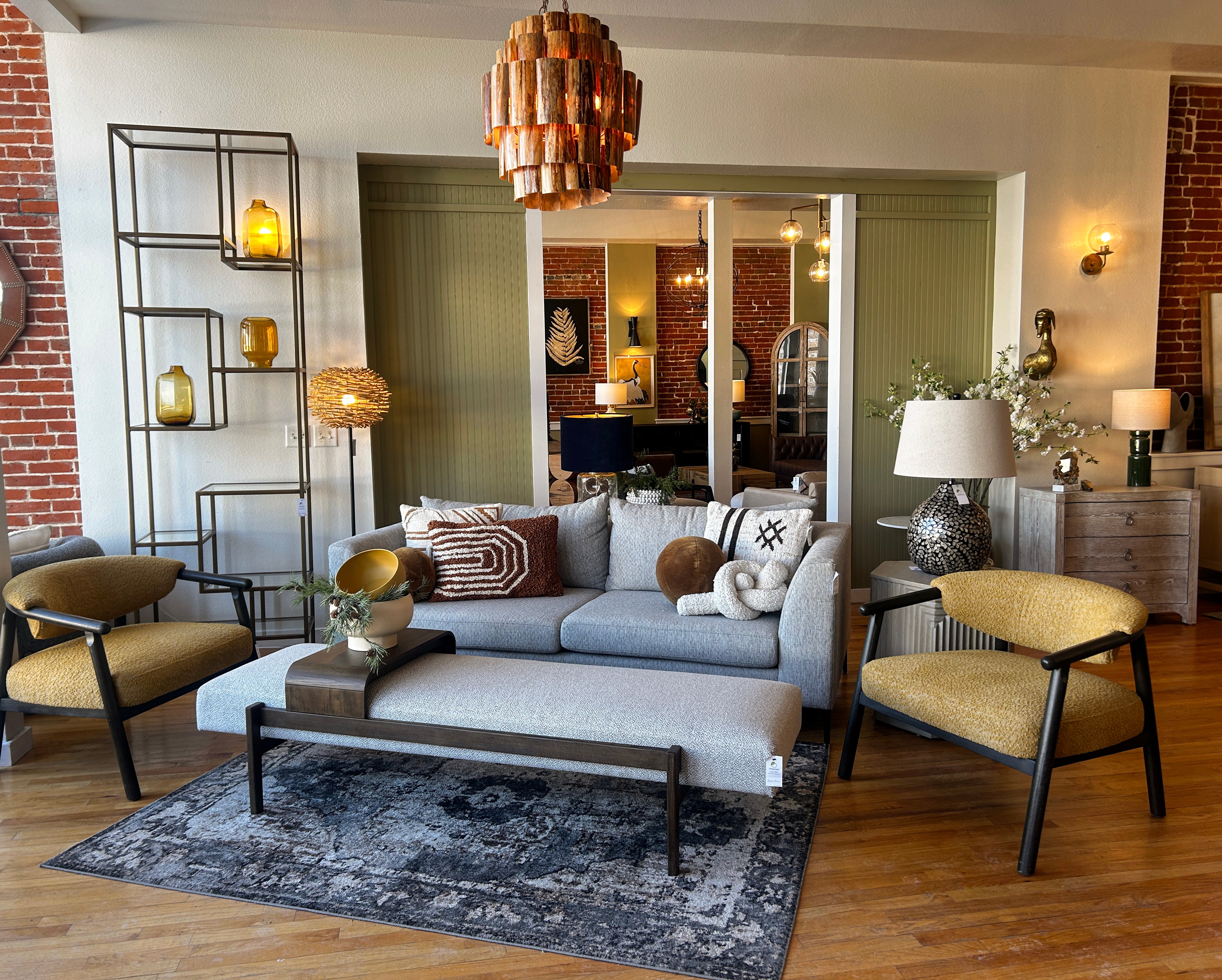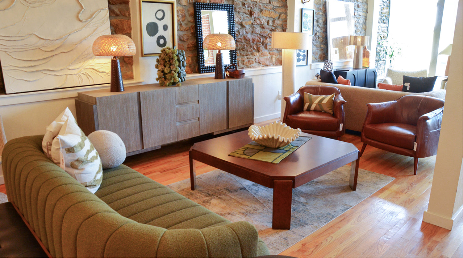 Located in the heart of North Lawrence’s antique district, our local showroom features a curated selection of the furniture and décor we offer online. Browse sofas, armchairs, rugs, lighting, and more—then work with our friendly team to find the perfect pieces for your home.