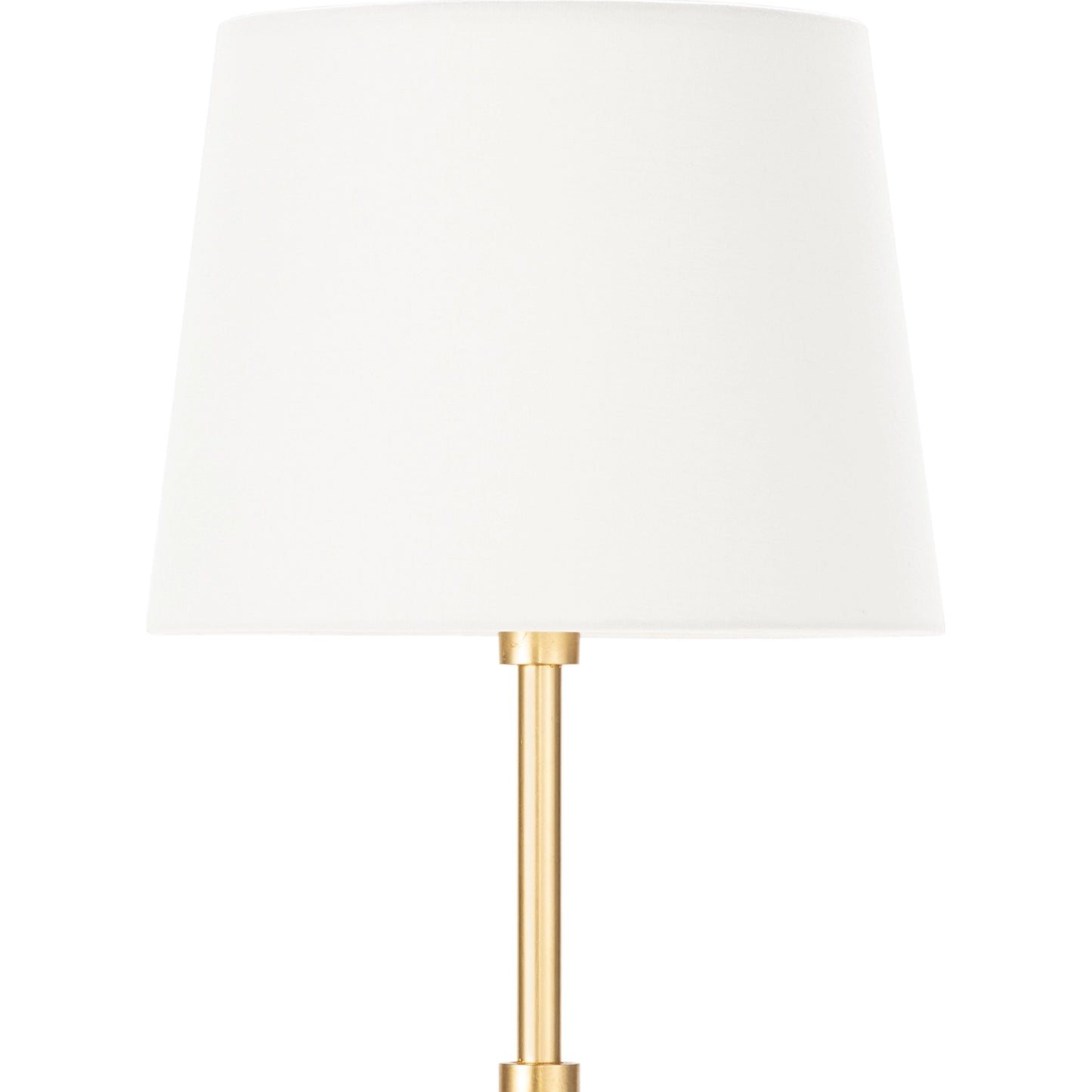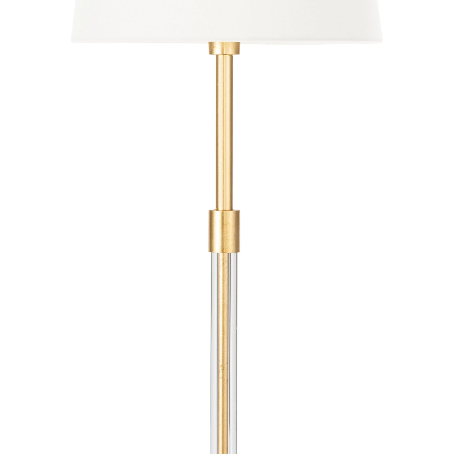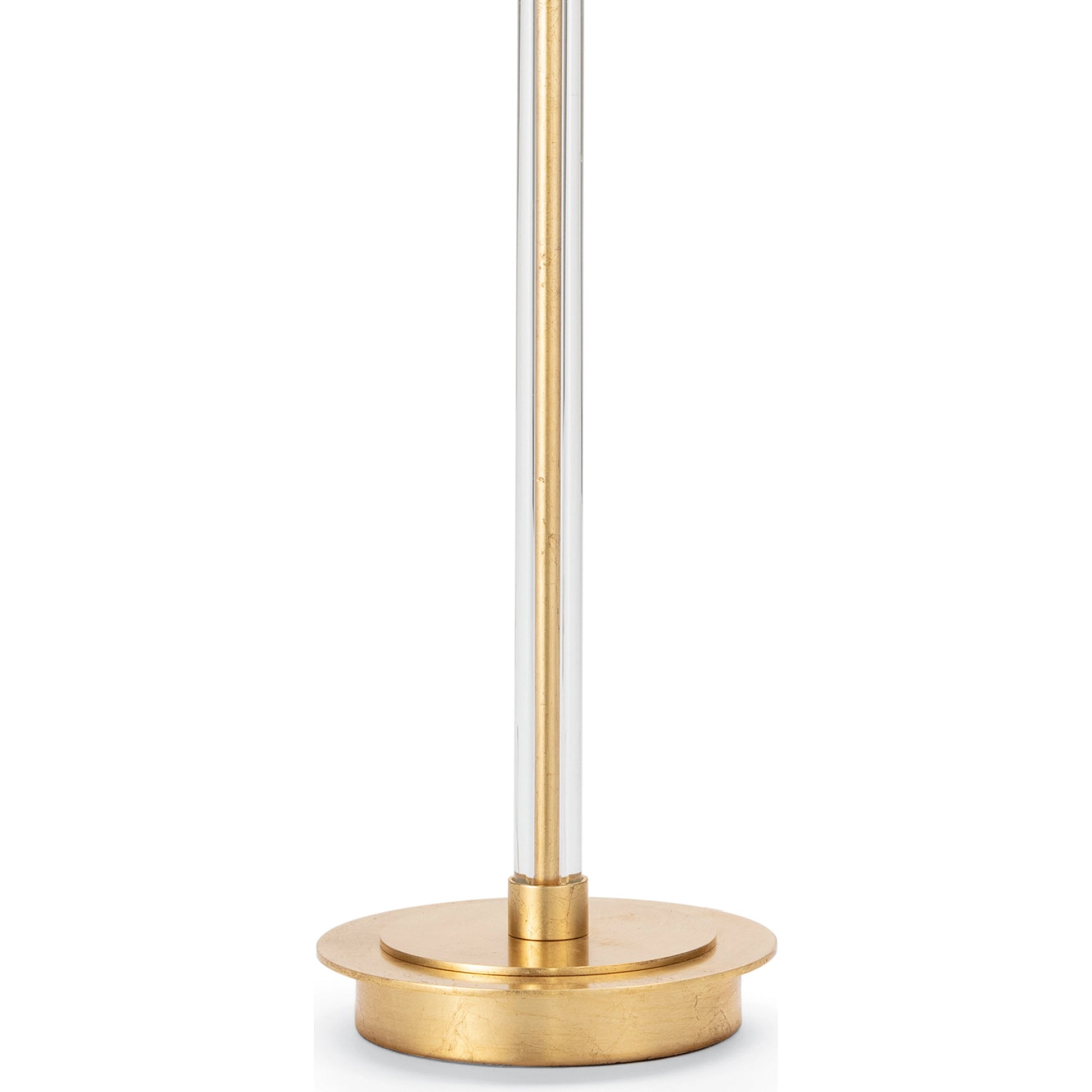 A traditional design with a crystal and gold leaf body, the Auburn Buffet Lamp has a tall, slender silhouette that sits elegantly on a metal base. With a crisp, natural linen shade, this sophisticated lamp looks beautiful in a pair to frame a buffet or console.