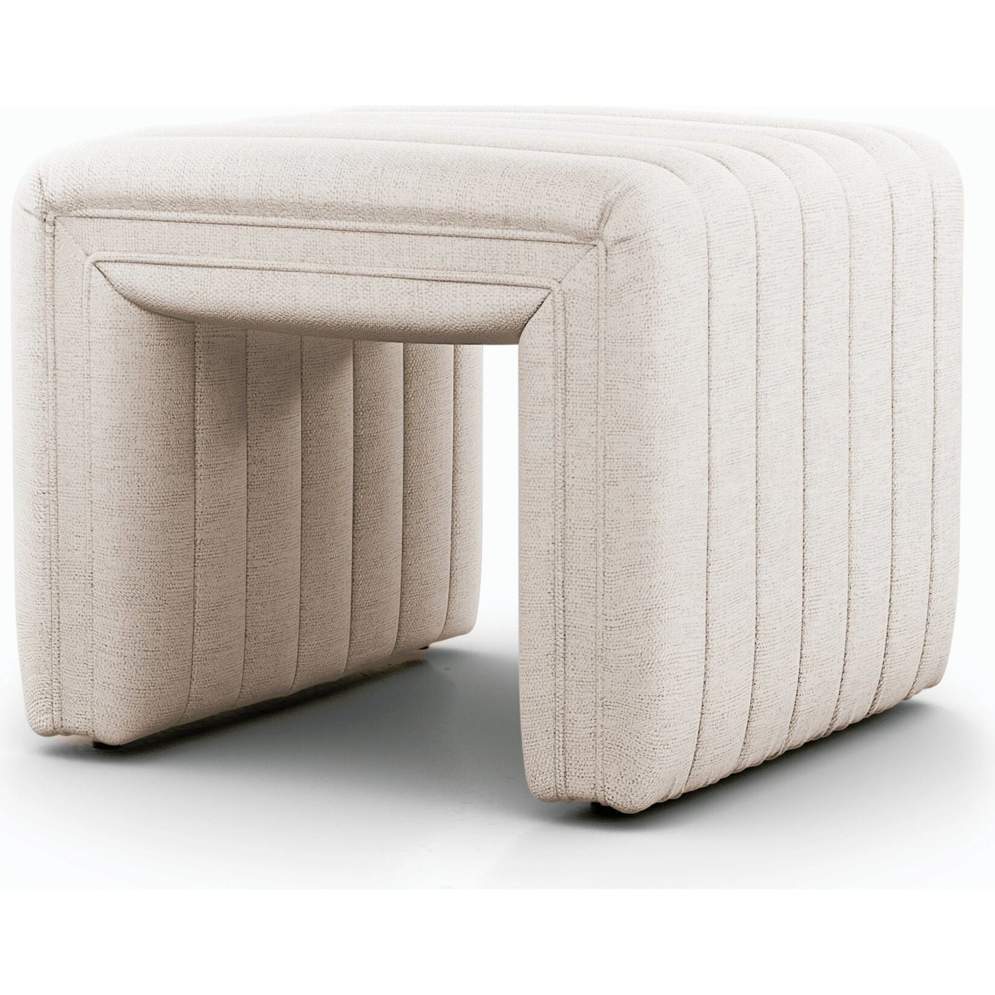 Layer in an extra surface or added seating by way of a top-grain leather ottoman in a rich deep brown, with dramatic channeling for great texture.