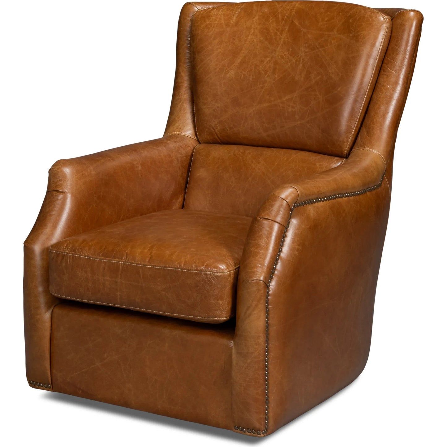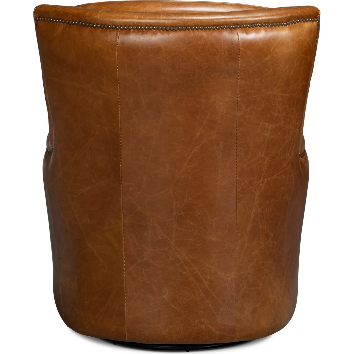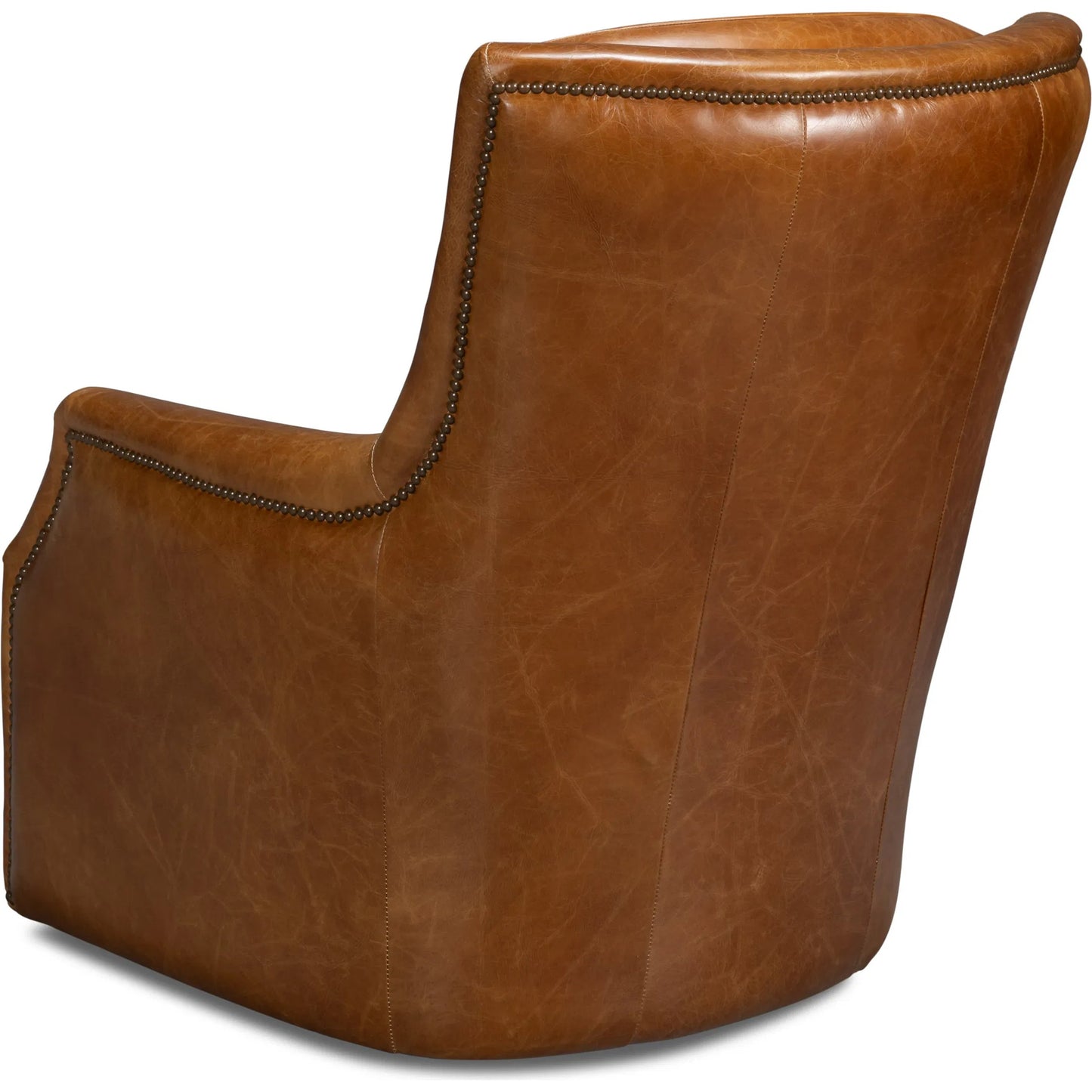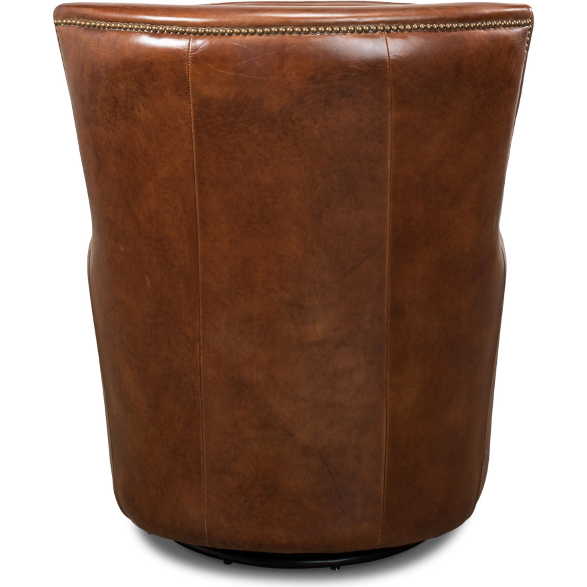 Experience classic luxury with our Baker Leather Swivel Chair. Upholstered in rich Cuba Brown Leather and adorned with classic nailhead trim and a swivel base, it exudes elegance, style and comfort for any living space.
