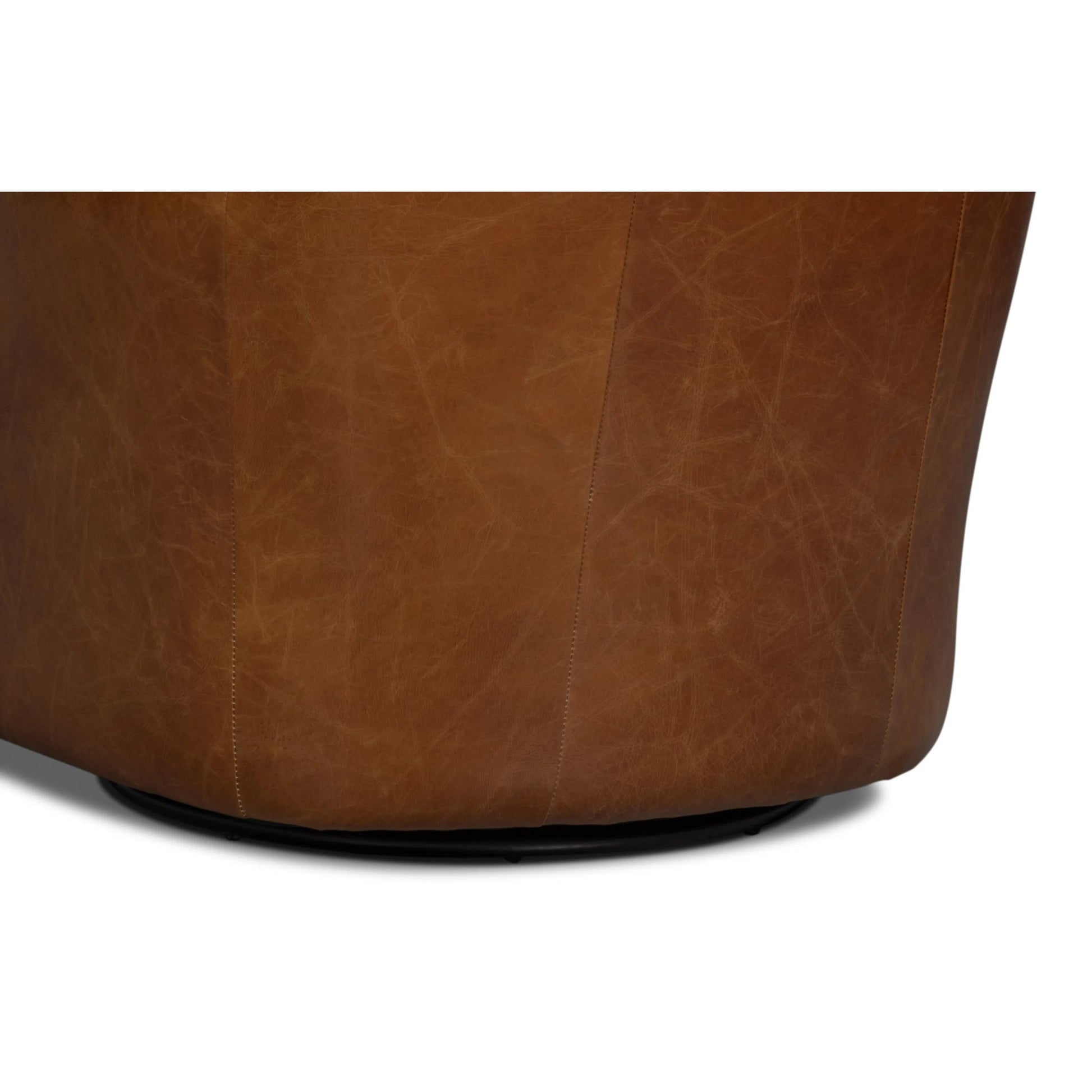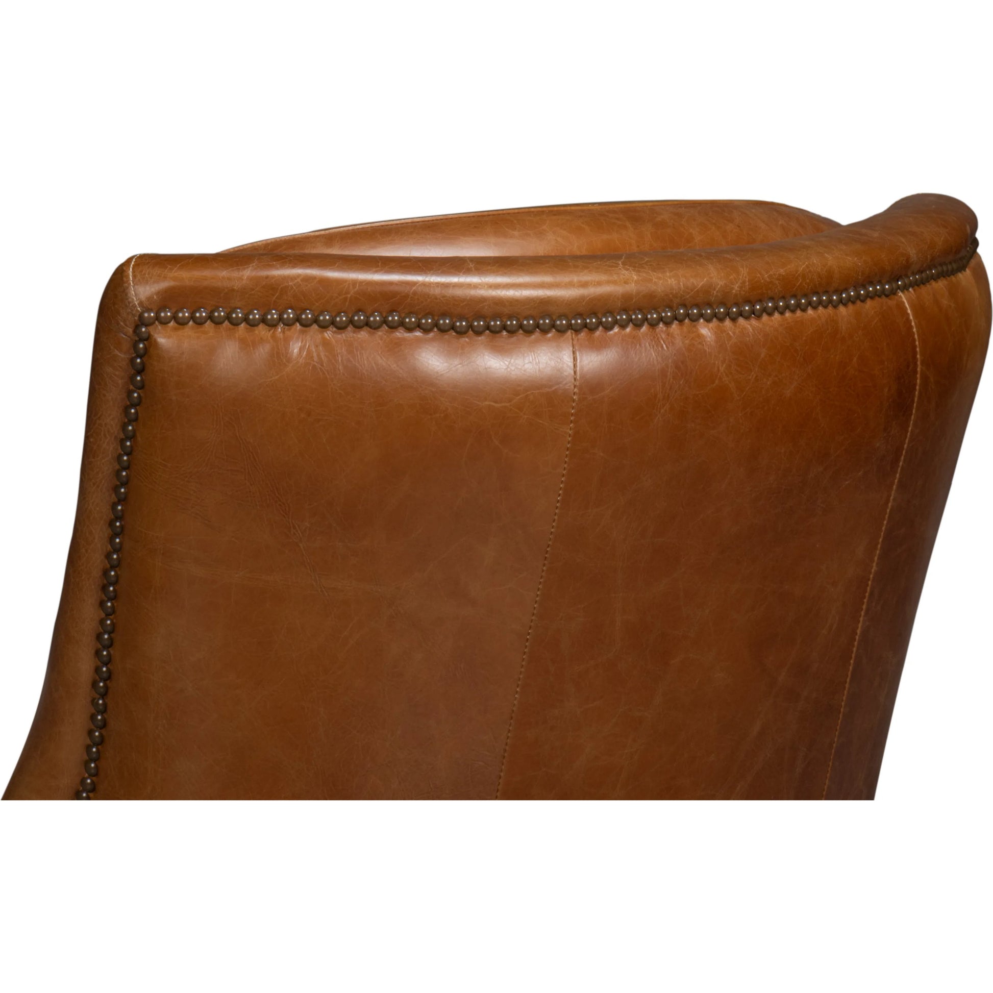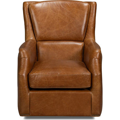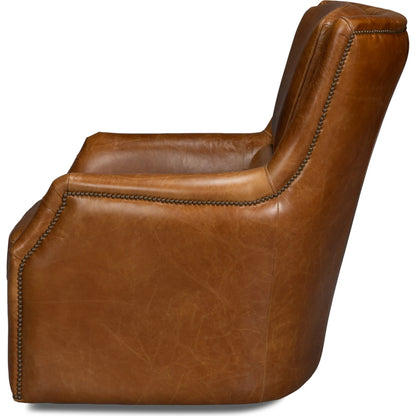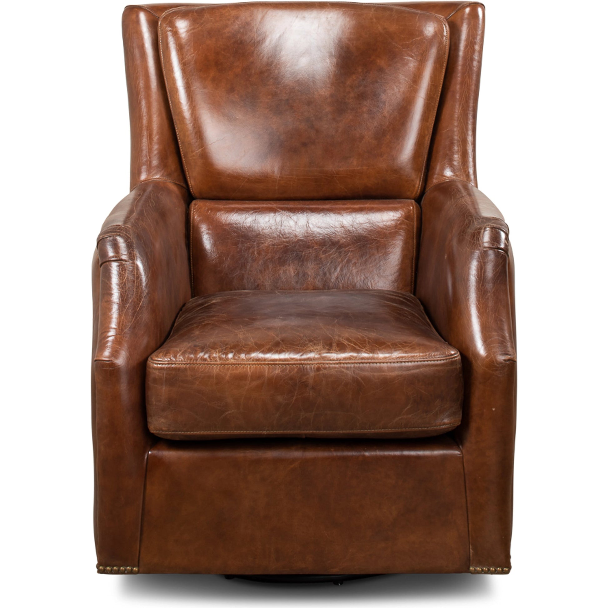 Experience classic luxury with our Baker Leather Swivel Chair. Upholstered in rich Cuba Brown Leather and adorned with classic nailhead trim and a swivel base, it exudes elegance, style and comfort for any living space.