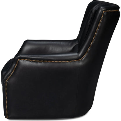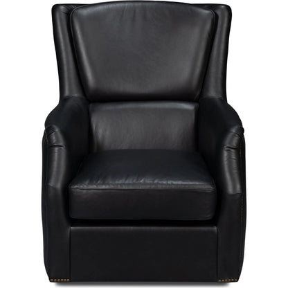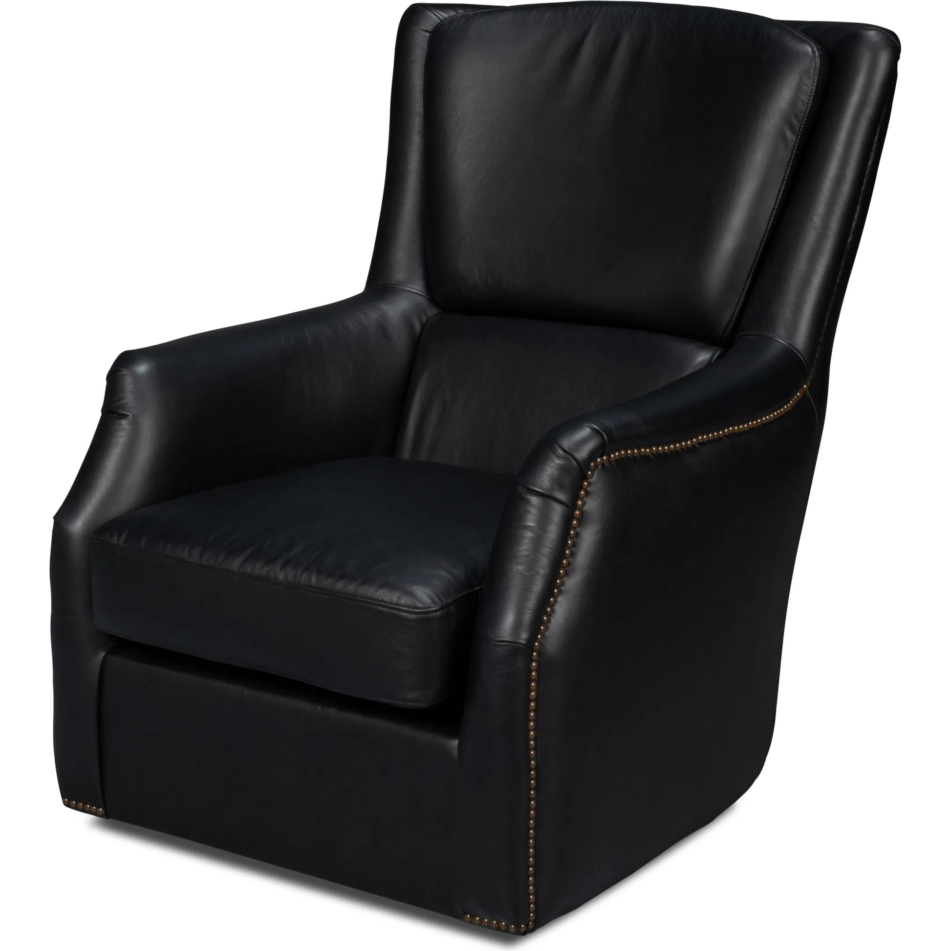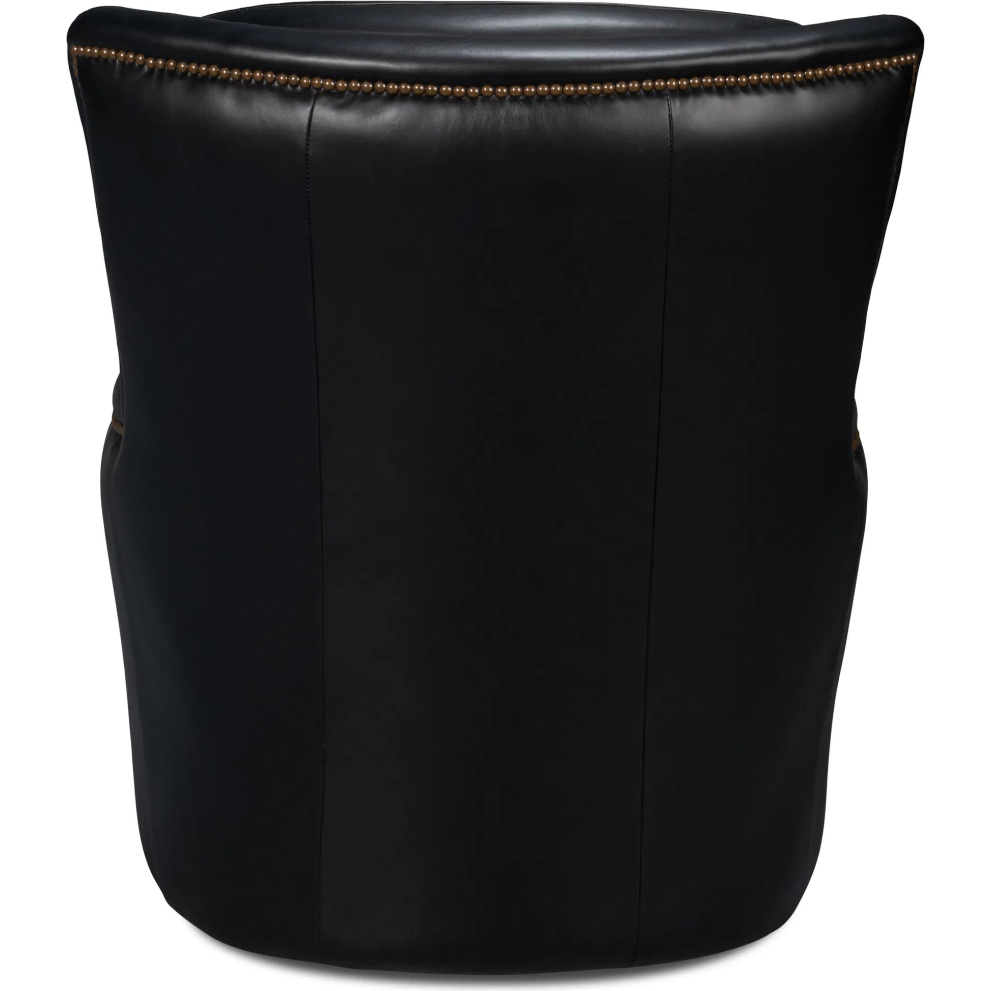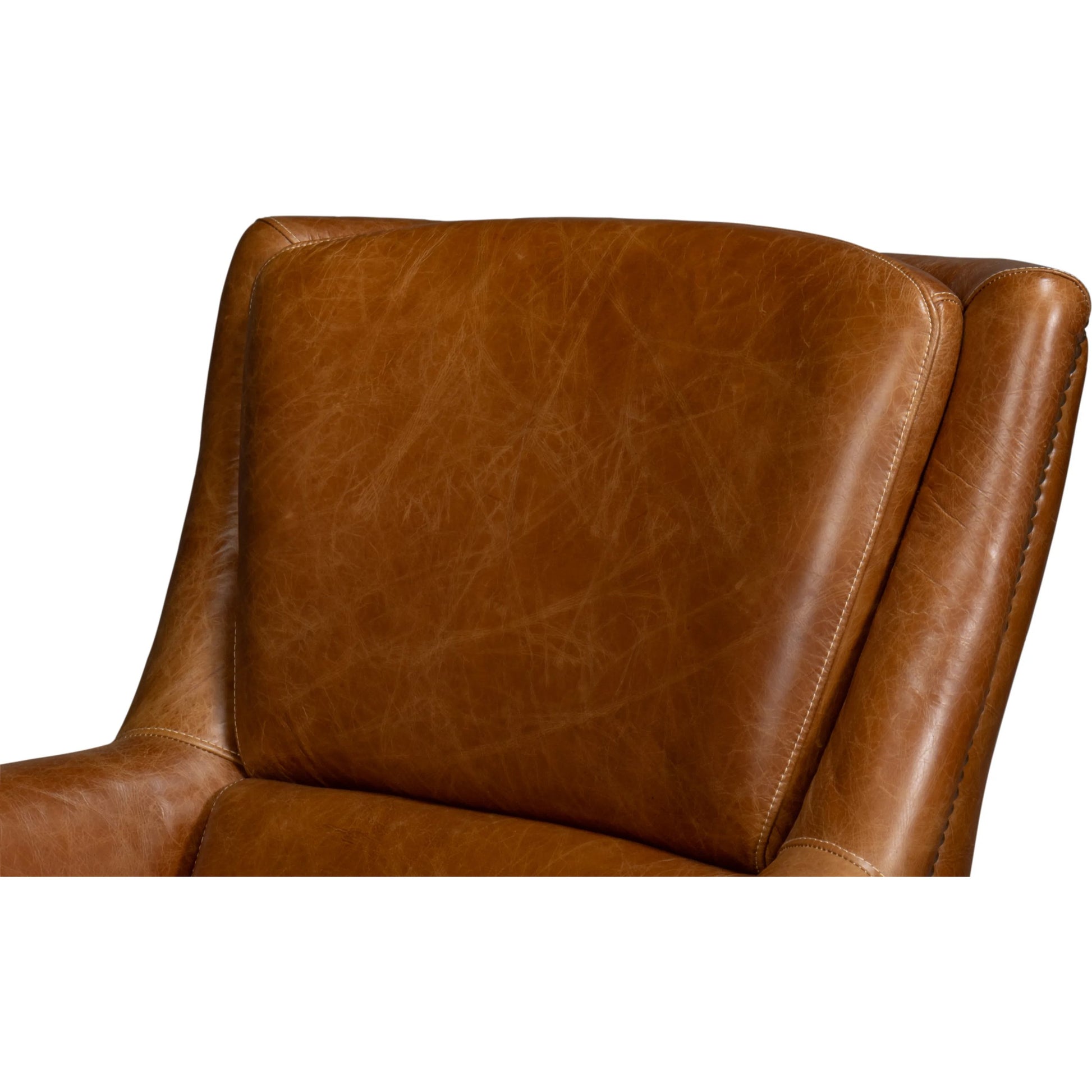 Experience classic luxury with our Baker Leather Swivel Chair. Upholstered in rich Cuba Brown Leather and adorned with classic nailhead trim and a swivel base, it exudes elegance, style and comfort for any living space.