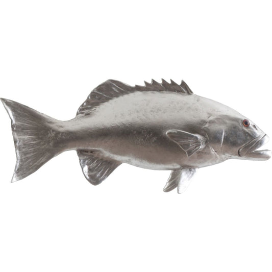 The Barramundi Wall Sculpture is made of composite in a silver leaf finish. This likeness of the seafaring creature is a chameleon of style—hang it in a modern kitchen and it takes on a zesty panache; place it in a child's bedroom and it will become a playful element in the space. Whether you have a lakefront home, a beachfront condo, or an urban oasis, the Barramundi Wall Sculpture with its luminous finish will bring the watery world inside. Powerful on its own, group this sculpture in multiples to create a school of fish for added impact. Each of our nautical pieces of decorative wall art reflects the ethos that Phillips Collection personifies: modern organic.