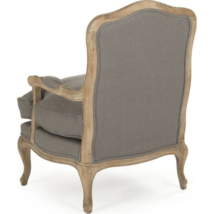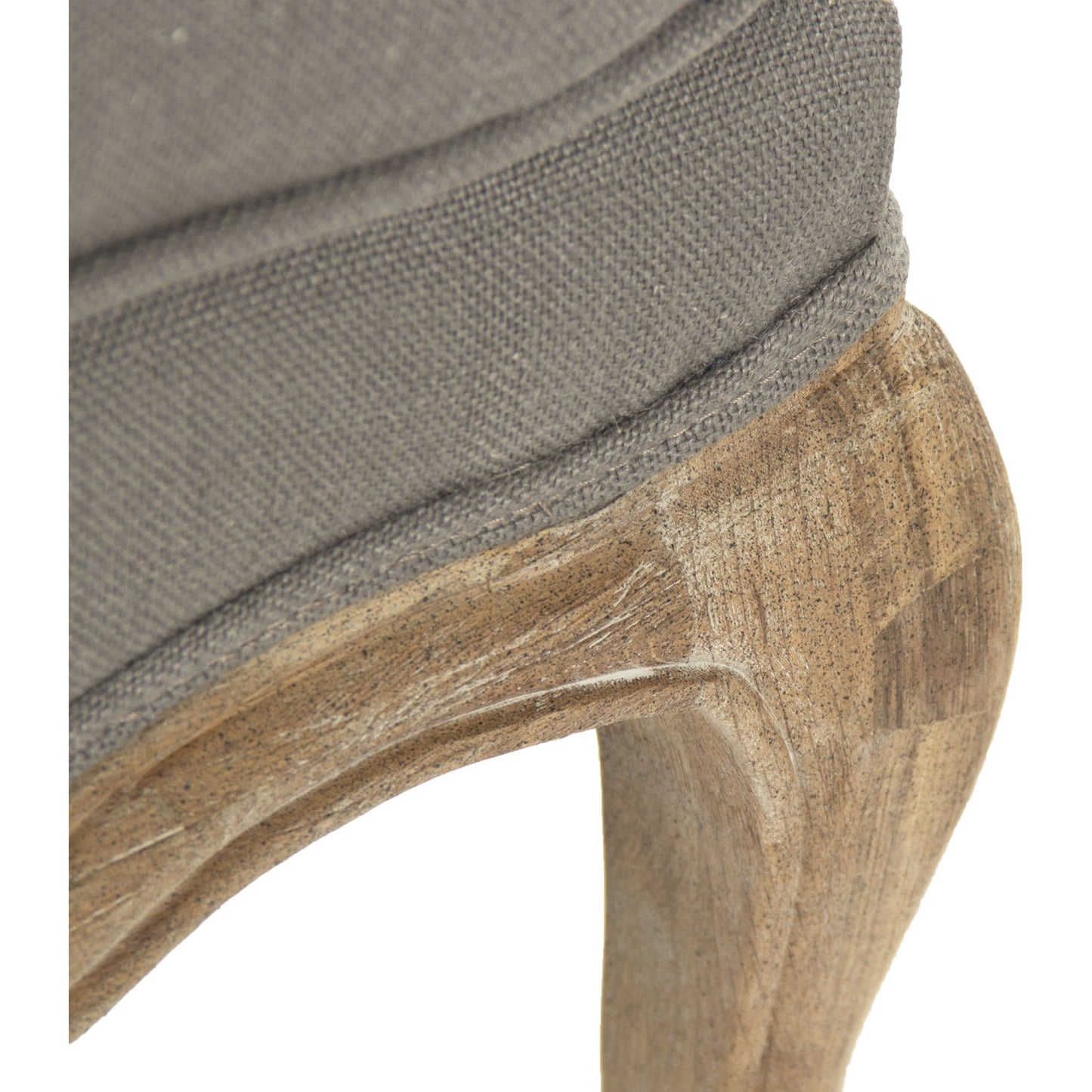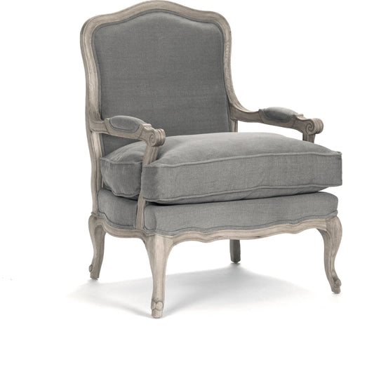 Arm chair upholstered in grey linen on limed grey oak frame.