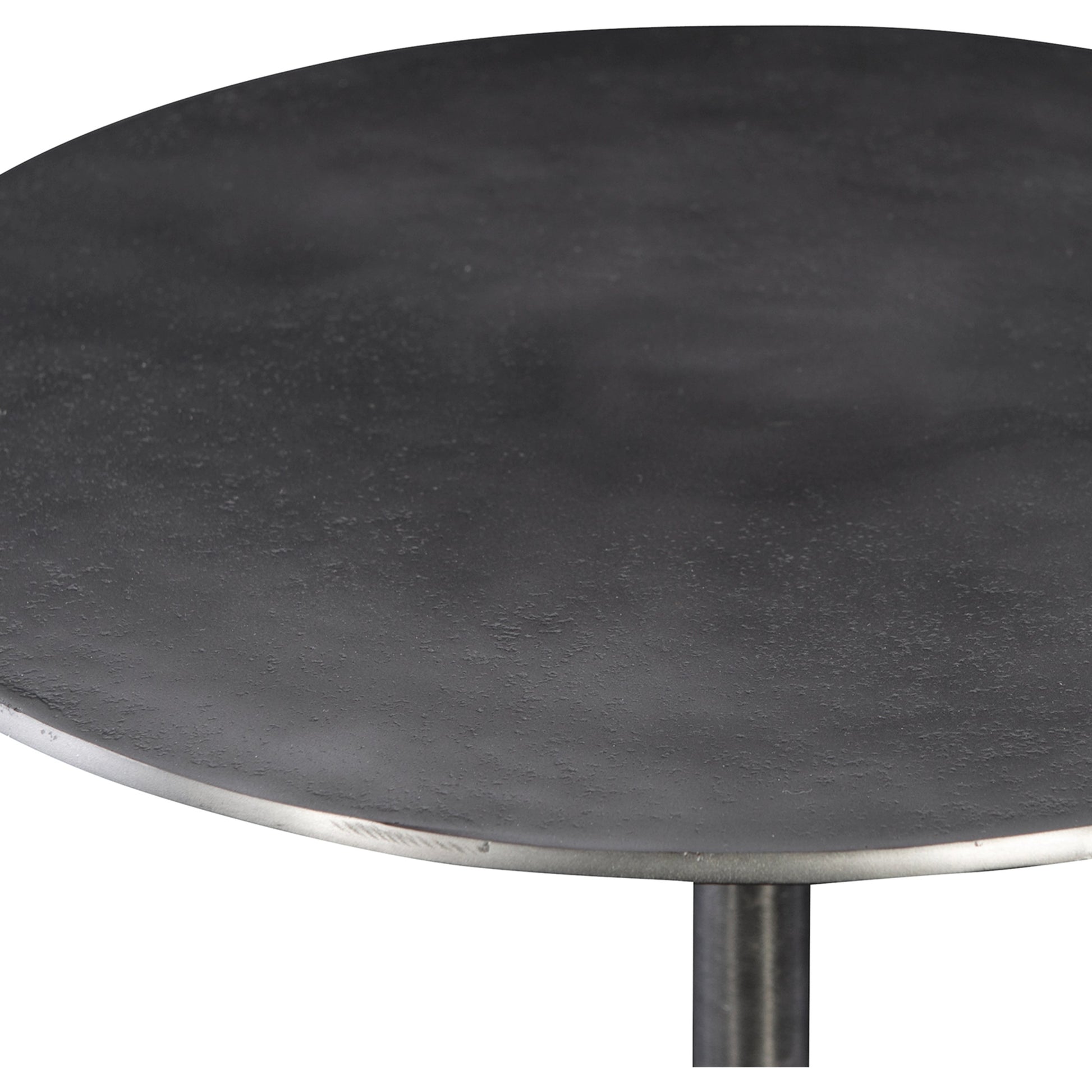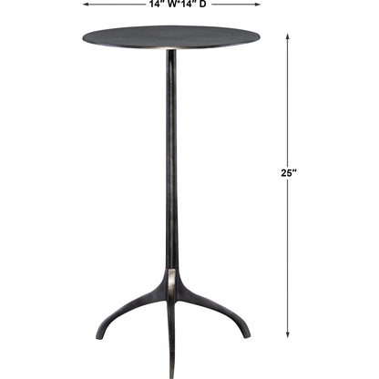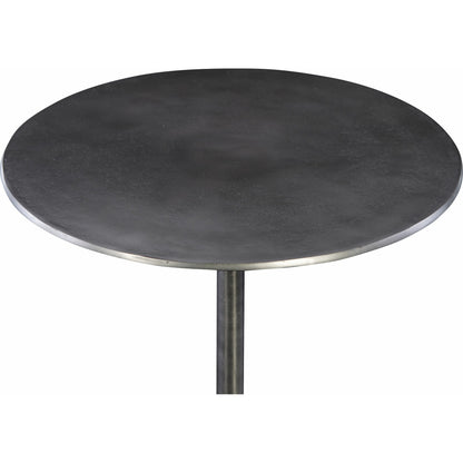 Showcasing Industrial Styling, This Hand Crafted Accent Table Features An Solid Cast Aluminum Construction With A Tripod Base Finished In Antique Nickel.