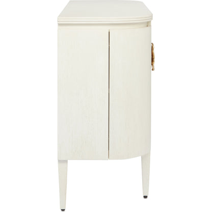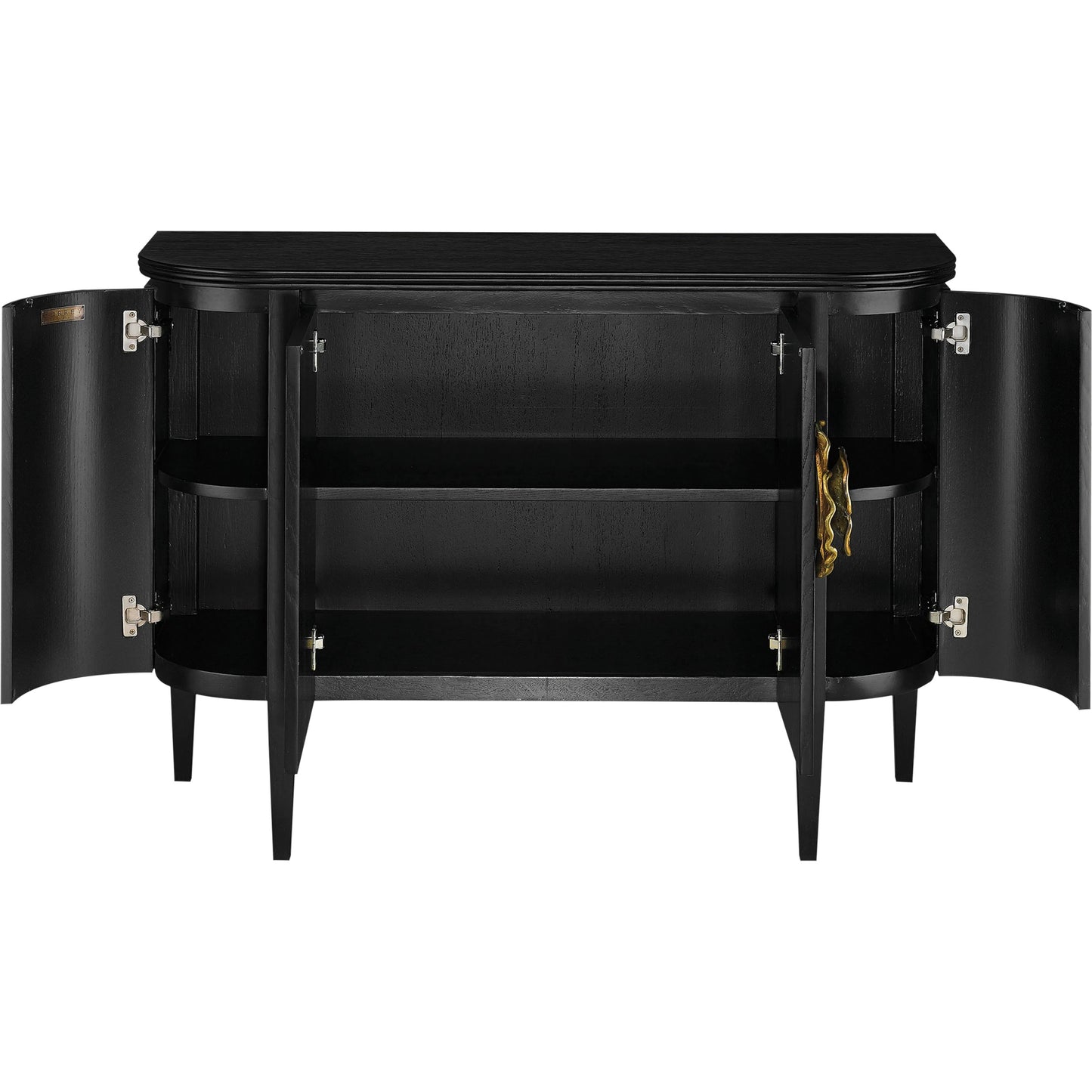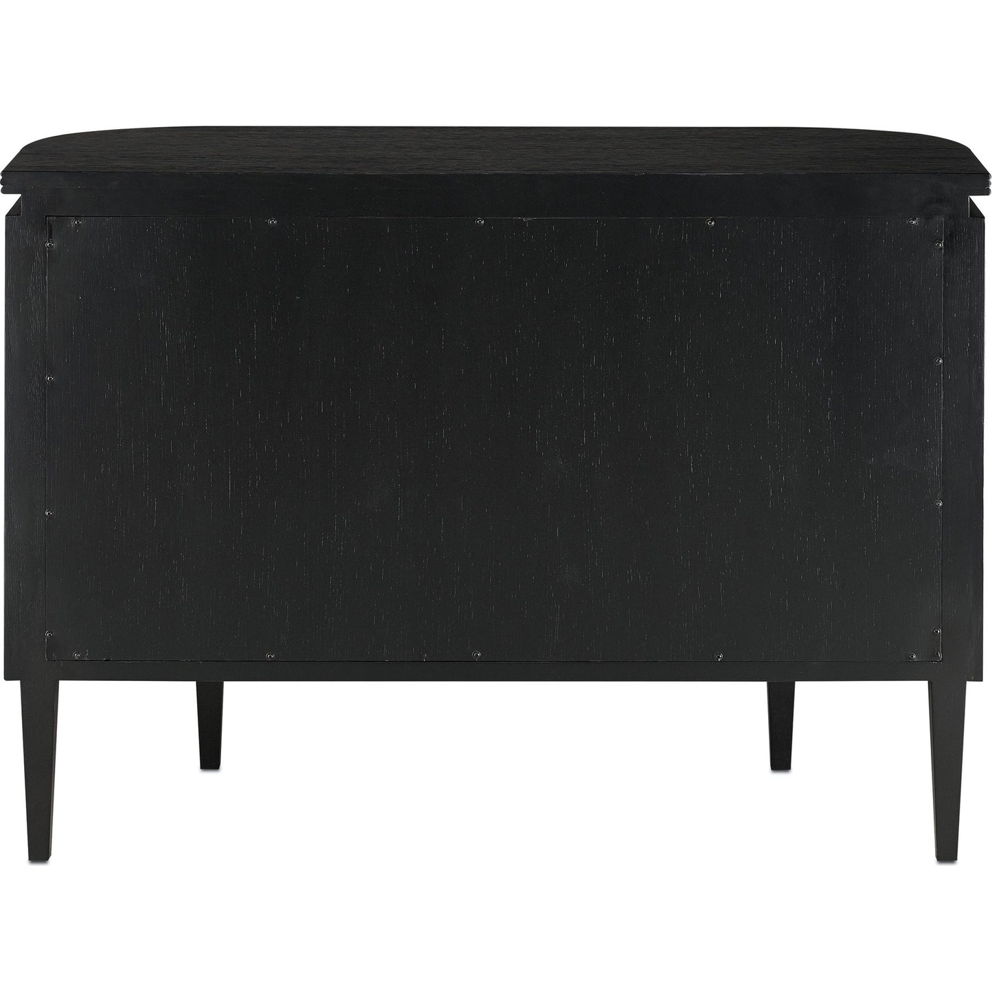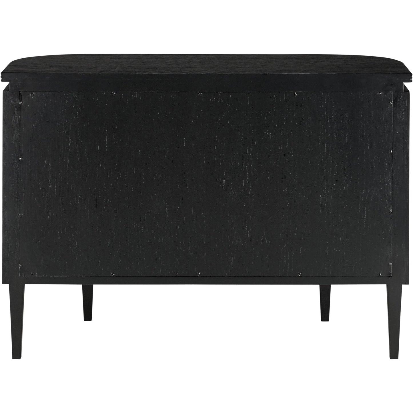 Stunning in its simplicity, the new demi-lune offering is an elegant Caviar Black stained wood that seems to just be the backdrop for the impressively oversized brass flower pull that steals the show.