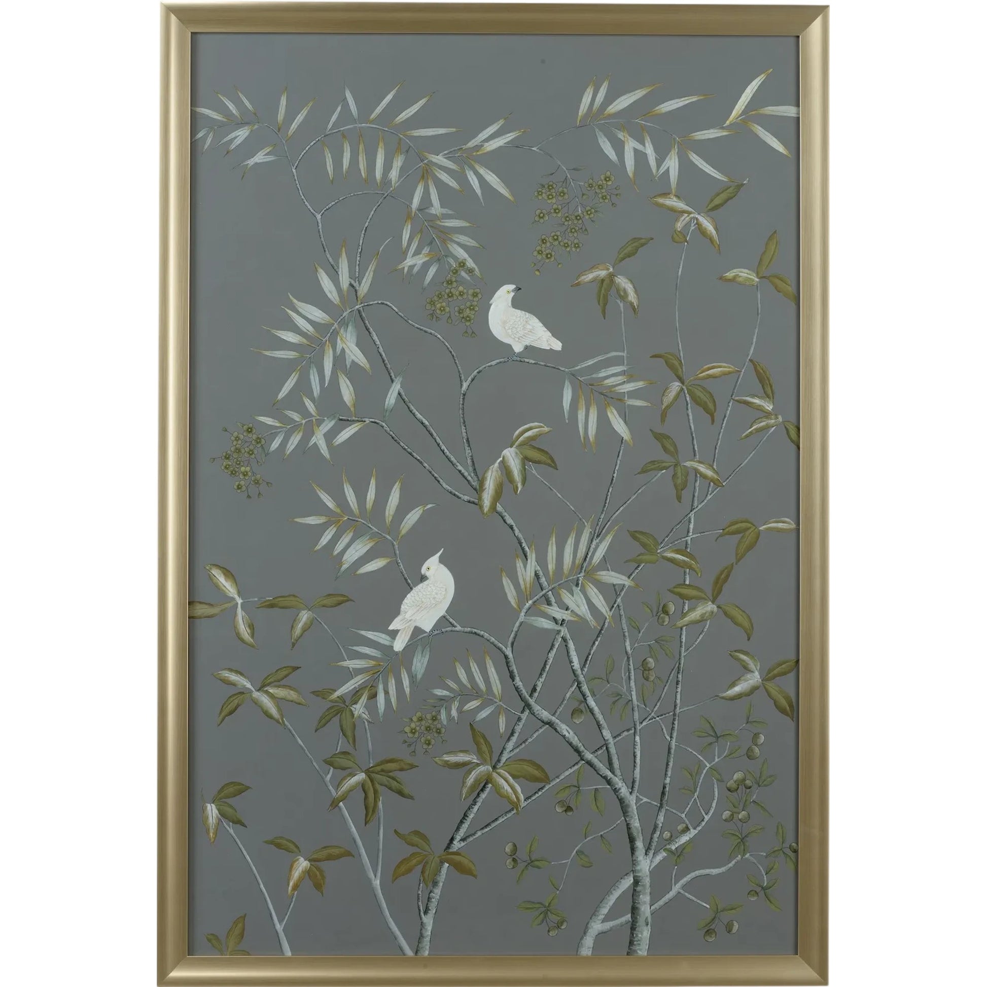 Watercolor on silk antique silver frame with glass. Hand painted.