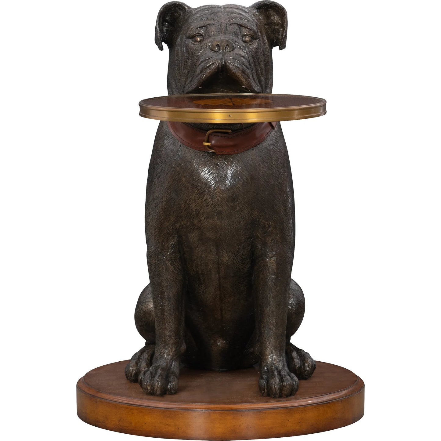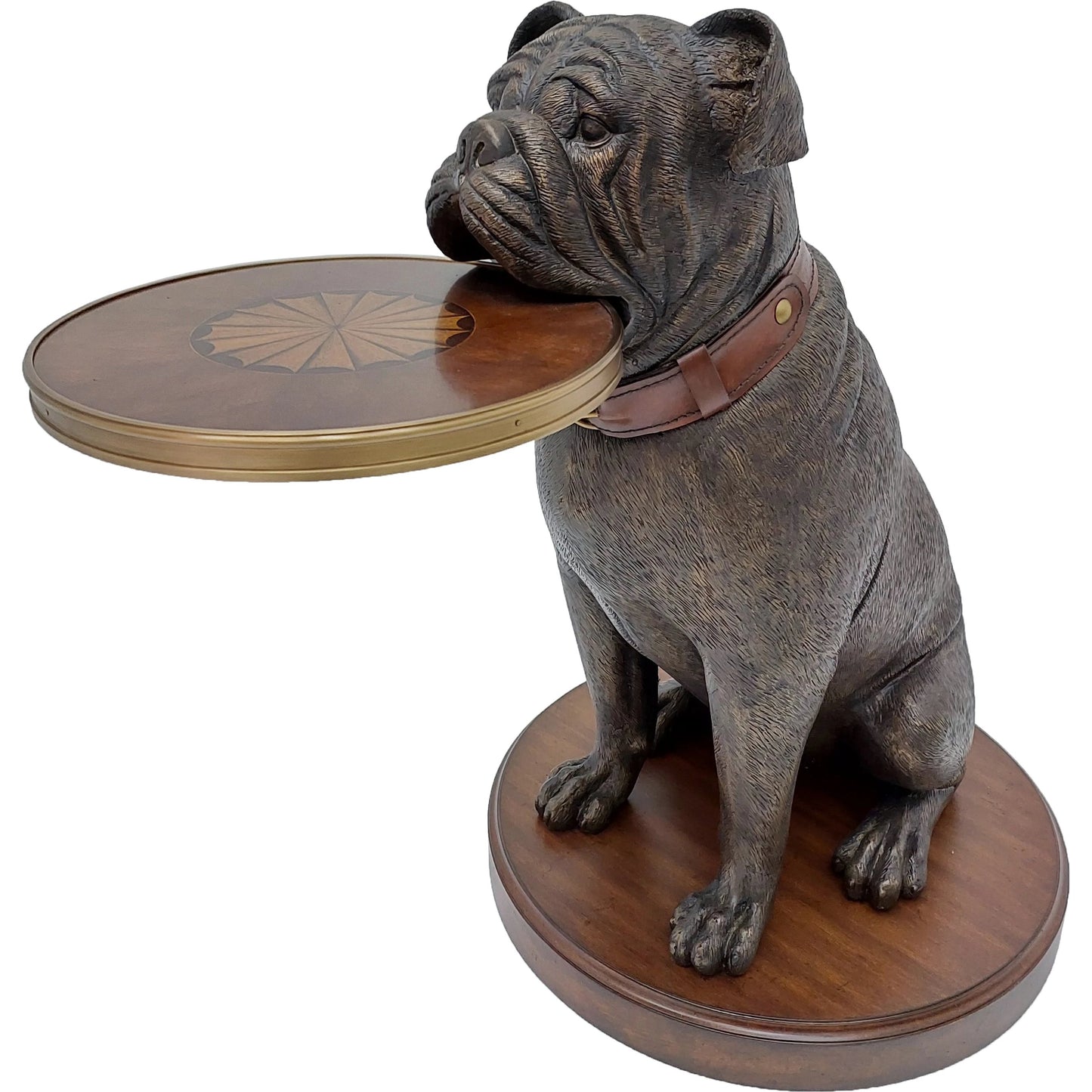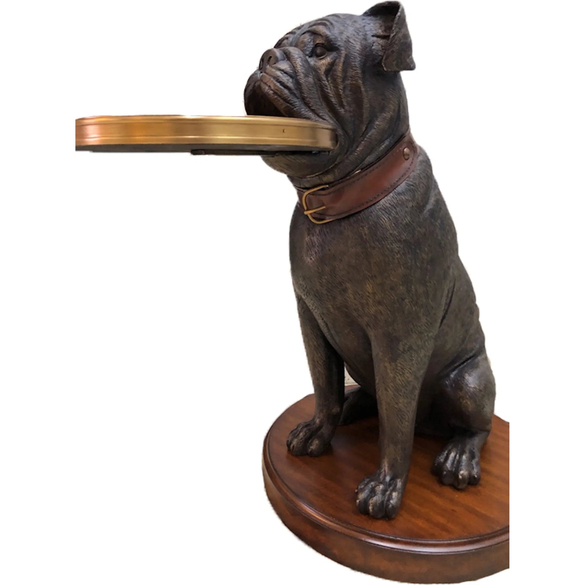 Metallic Brown Finished Cast Resin Bulldog with Tray Table, Antique Brass Accents.