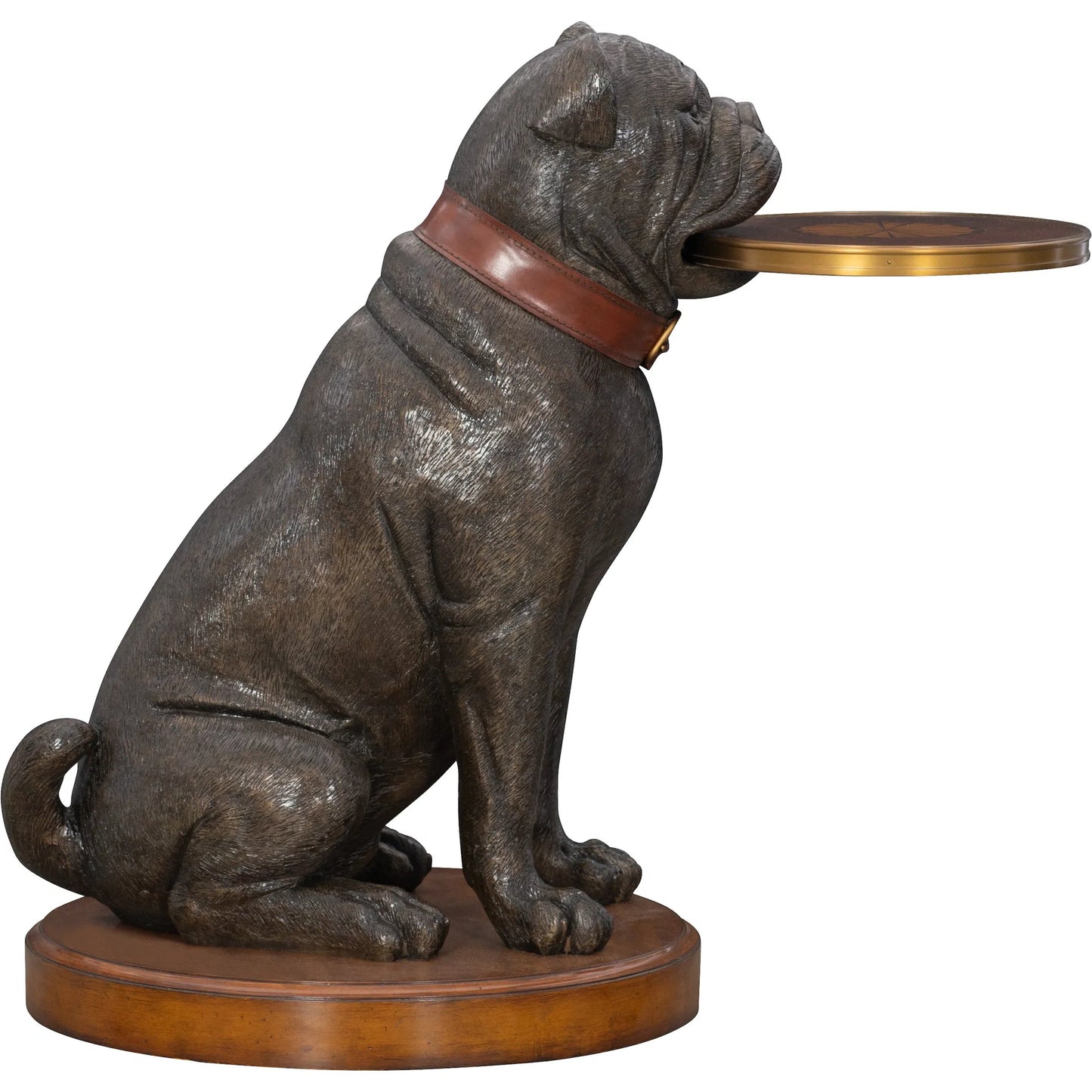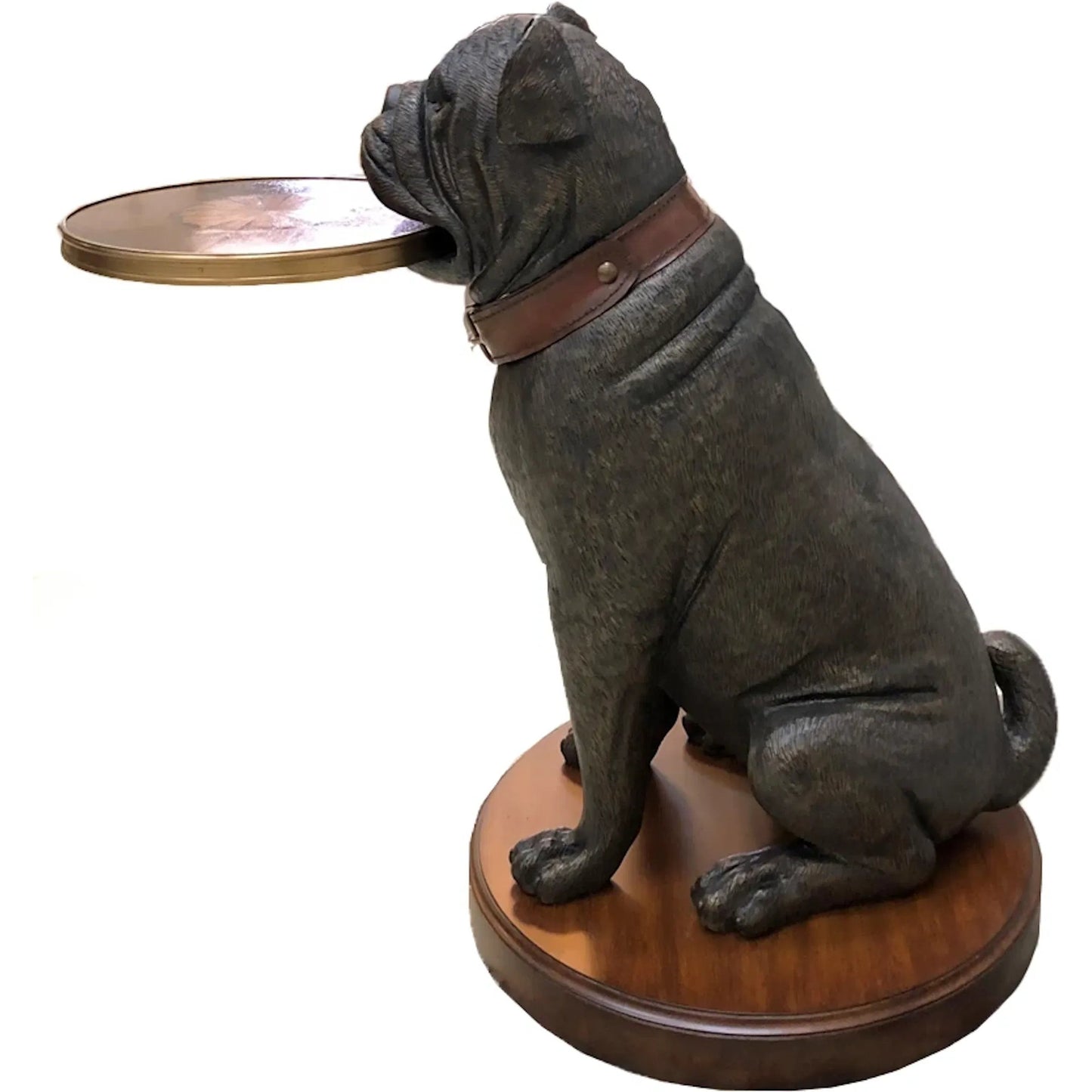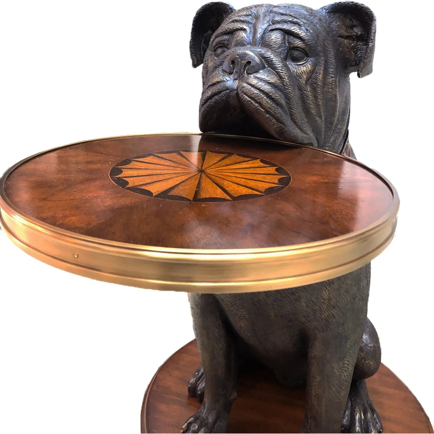Metallic Brown Finished Cast Resin Bulldog with Tray Table, Antique Brass Accents.