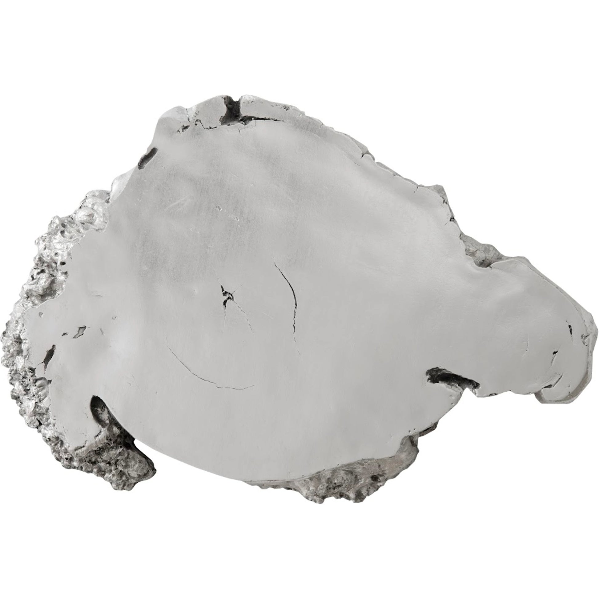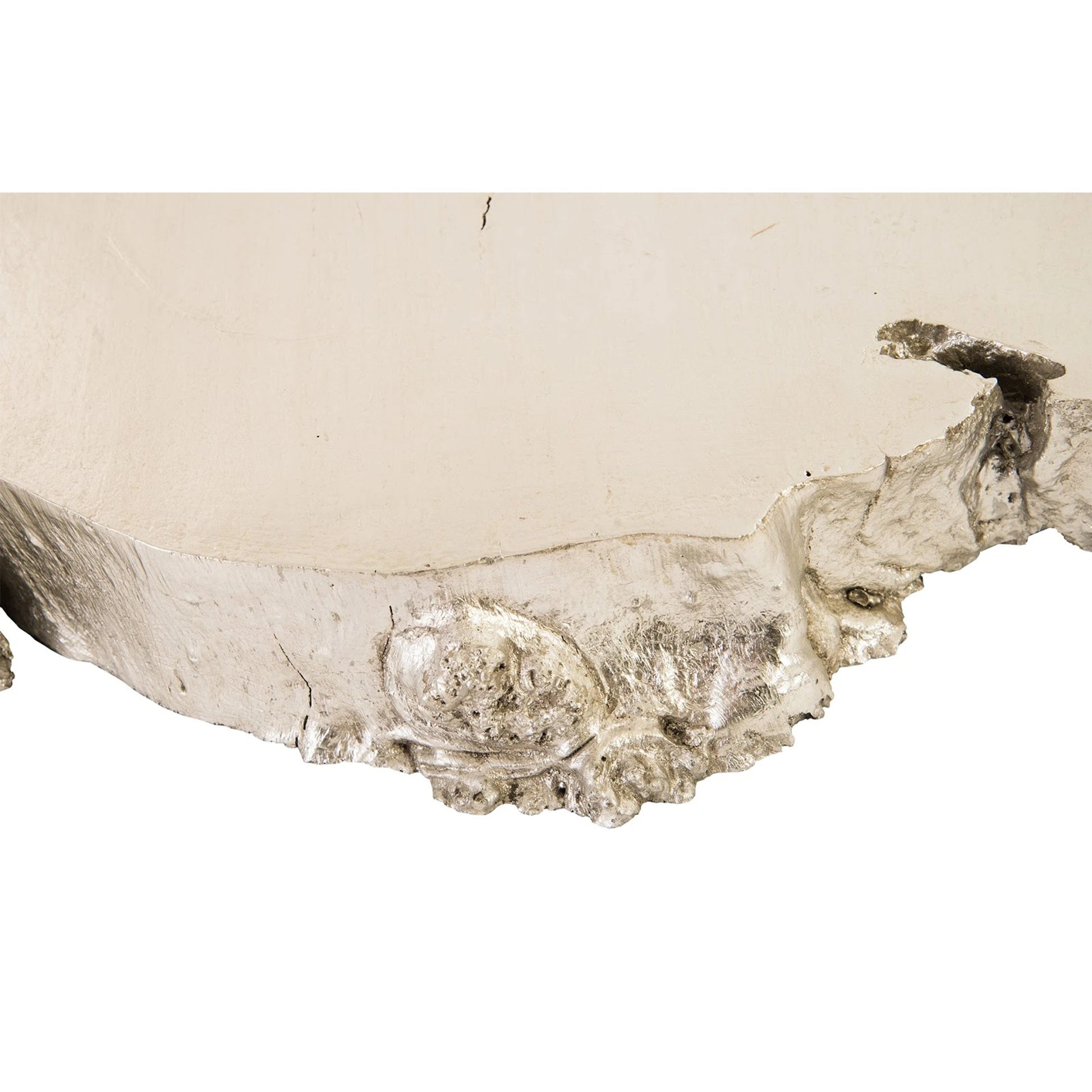 Our liquid metal finish is achieved using a special, proprietary metal powder developed in Italy which achieved a polish and richness that is absolutely stunning. Please note that due to the high level of polish, the table reflects the colors of the room in which it resides, so the tone will vary from lighter to darker accordingly.