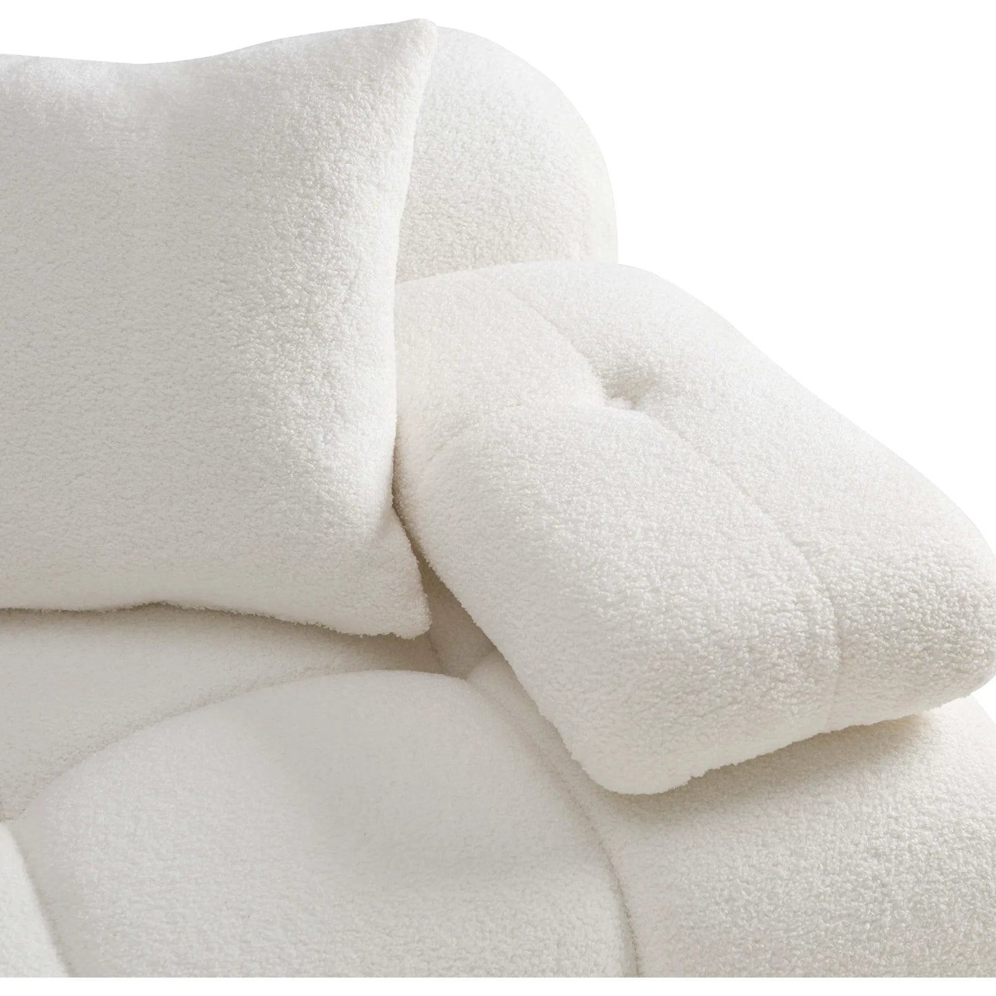 Introducing the Calliope Modular Collection, featuring ultra-soft upholstery that brings unmatched comfort. The deep hand-tufted structure creates the cushioning curves reminiscent of a brioche bun, enveloping you in a pillowy silhouette. With a modular layout allowing for endless configuration possibilities, the detached movable arm cushions add versatility, enabling you to customize your space easily. Available in cream or black vegan shearling and cafe au lait performance velvet options.