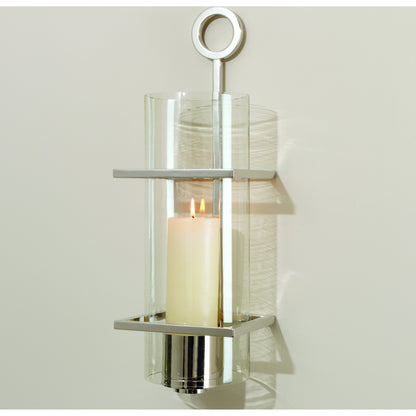 Square pieces in polished nickel hold a cylindrical glass piece forming our Circle in Square Wall Sconce. The simple design gives your walls sophisticated polish.|Candle