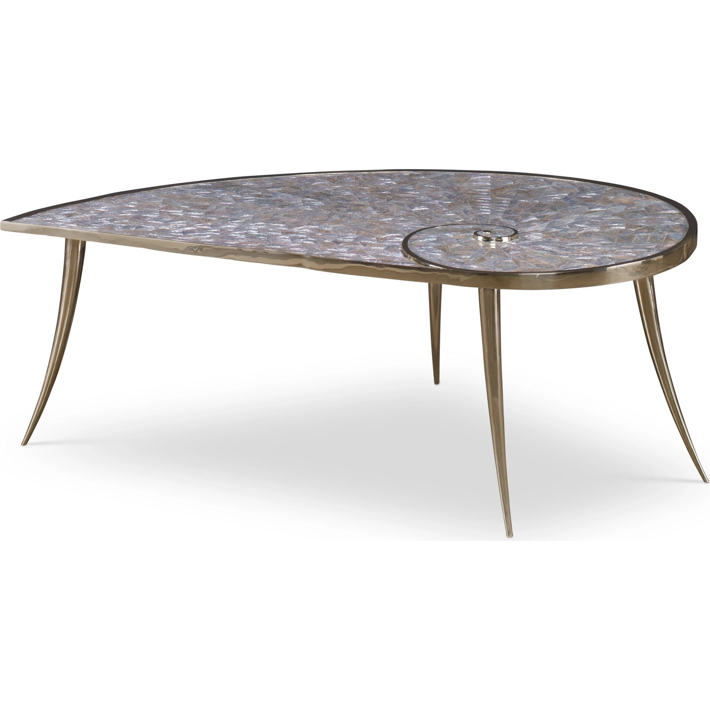 Polished Brass Closs Cocktail Table with Inlaid Abalone Shell Top.
