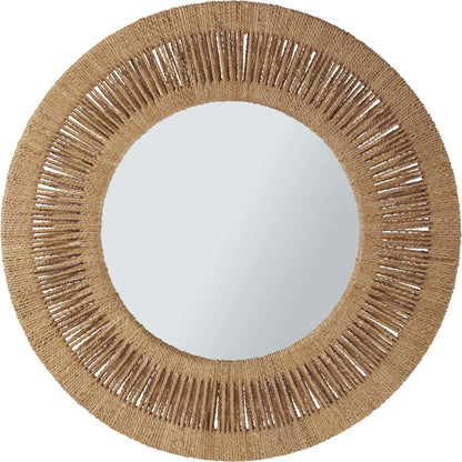 Subtly inspired by a sunburst silhouette, the Escape Coca Plum Mirror is a beautifully circular home accent wrapped in a naturally-finished woven abaca material.