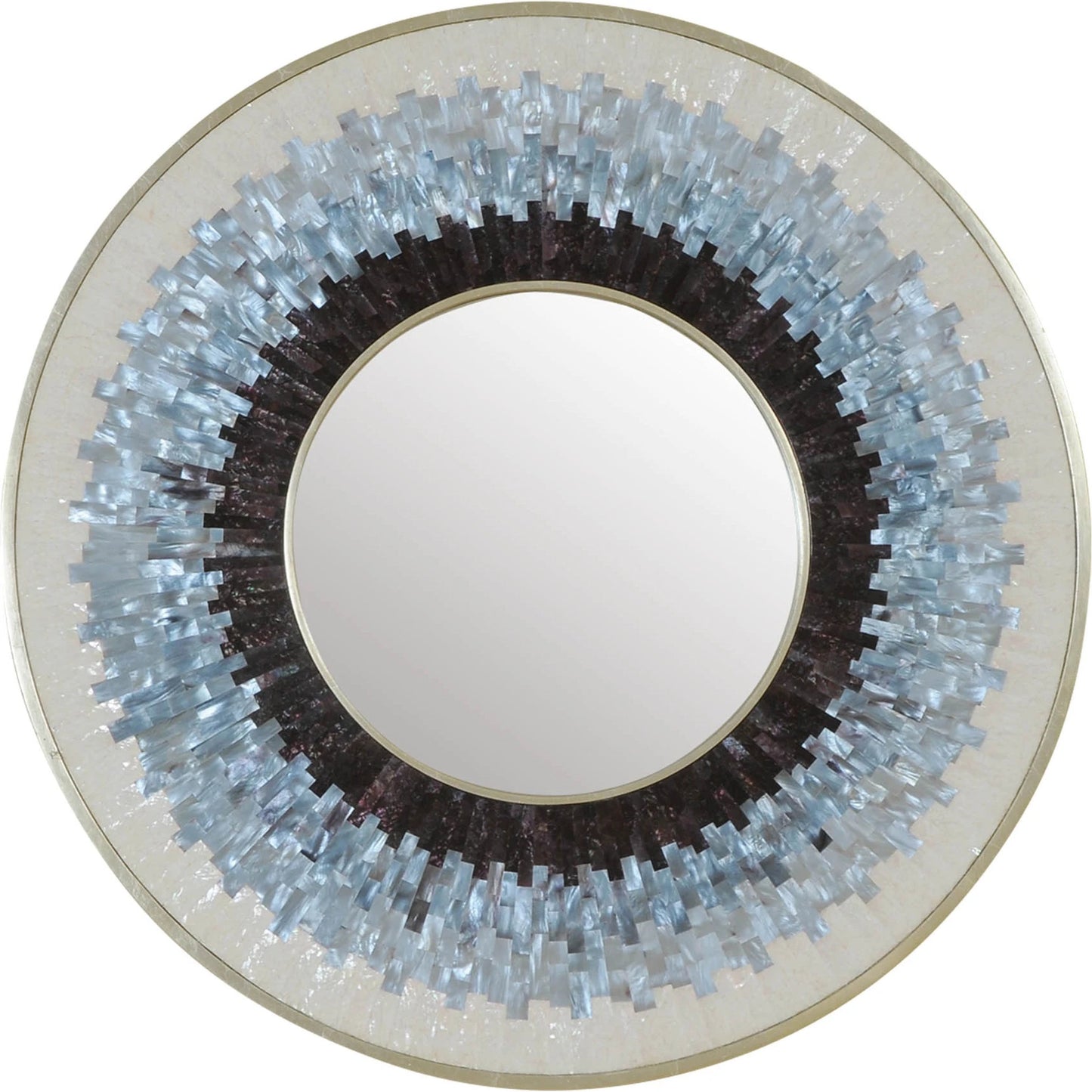 Assorted Shell Inlaid Round Mirror with White Gold Accents.