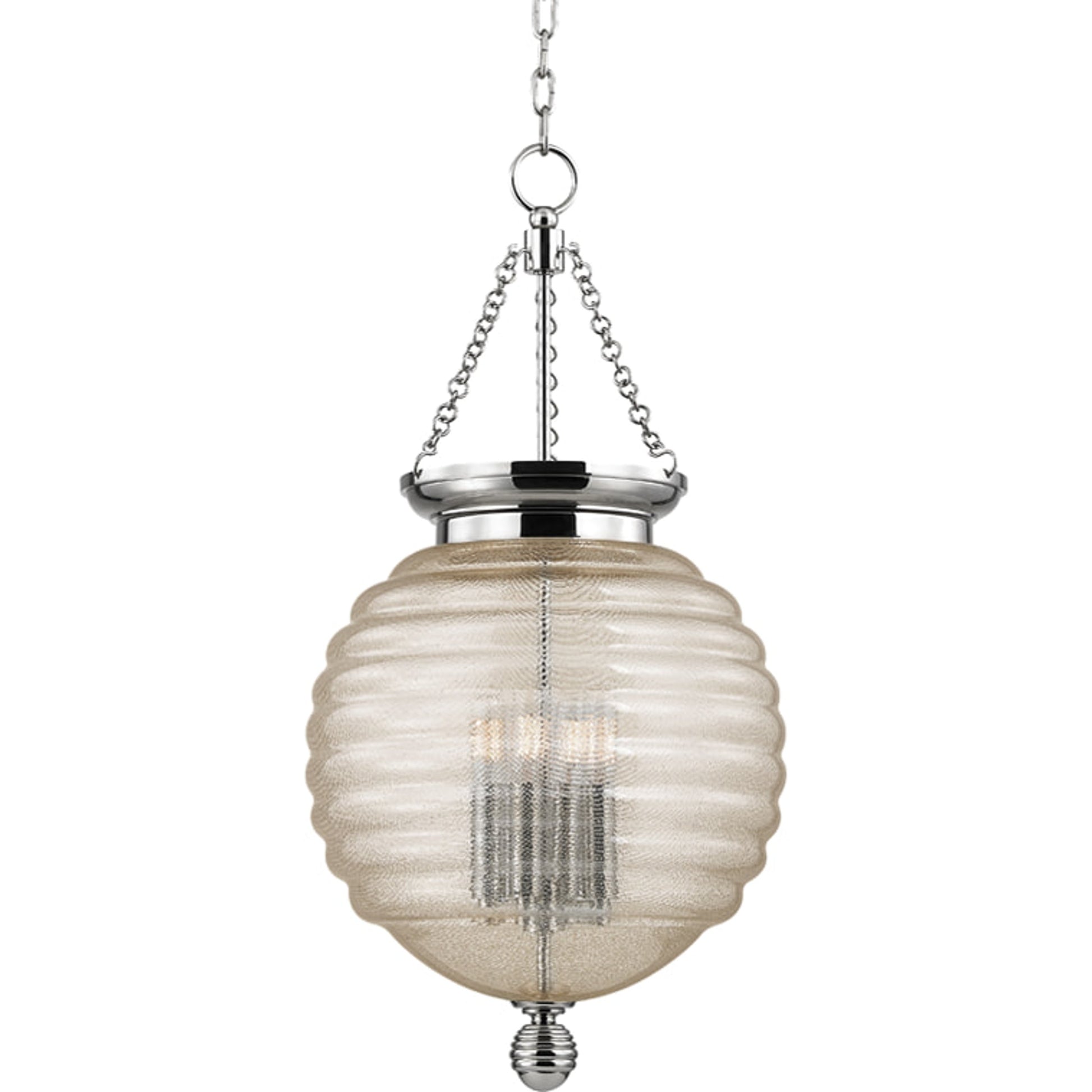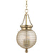 Brass mesh dissolves into spun glass in our Coolidge family. Its unifying theme is the beehive, with the iconic shape most prominently displayed in its artisanal diffuser. Cast metal canopy and finial spin subtle variations on the spherical shape.
