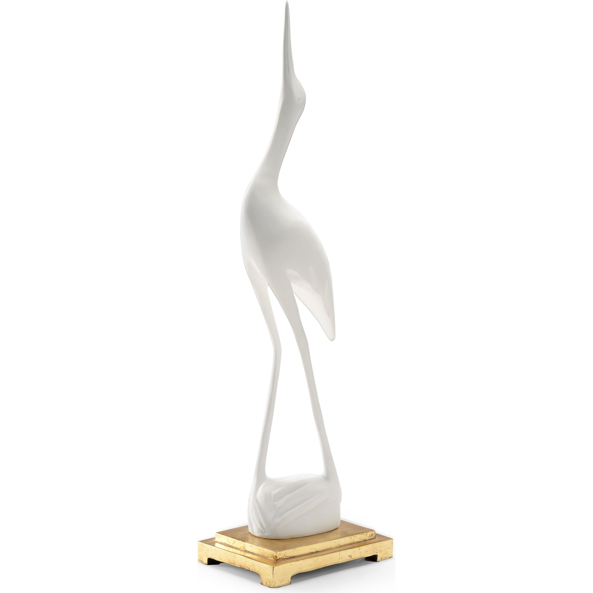 Matte white crane with an antique gold leaf mounting