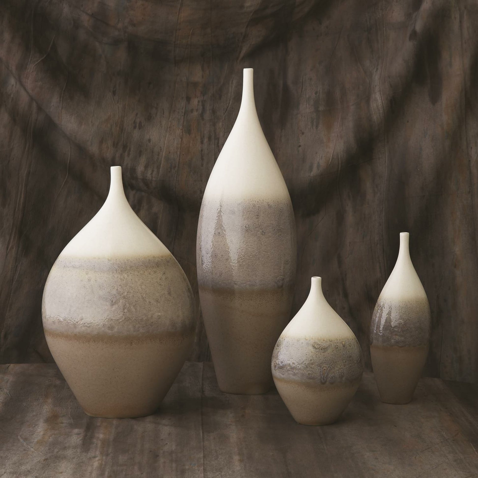 Shimmering neutrals give way to a cool, creamy ivory on our Cream Rises Vase. The reactive glaze crackles and shines over the softly curved tear drop shape.