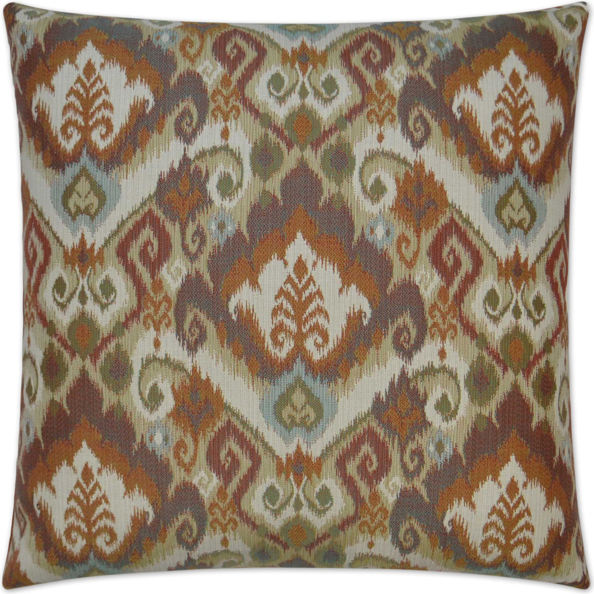 Reign in a bohemian vibe with this beautifully ikat patterned pillow. Crescendo in Tapestry features Uzbek motifs in earthy colors. This pillow comes with a solid colored back.