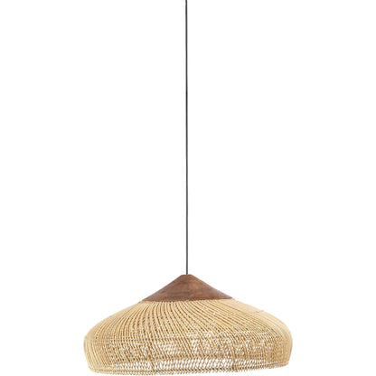 A creative interpretation of classic pendant lighting, this lamp evokes elements of nature and craftmanship. It features a teak top and organically shaped handwoven rattan details along the sides, all crafted with traditional Javanese technique. Hang alone, or create a cluster of pendants, mixing various sizes and shapes.