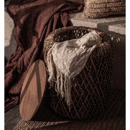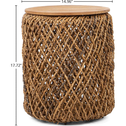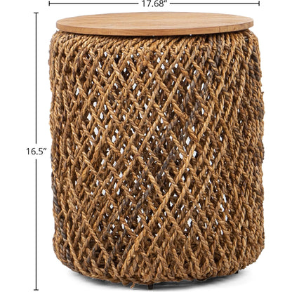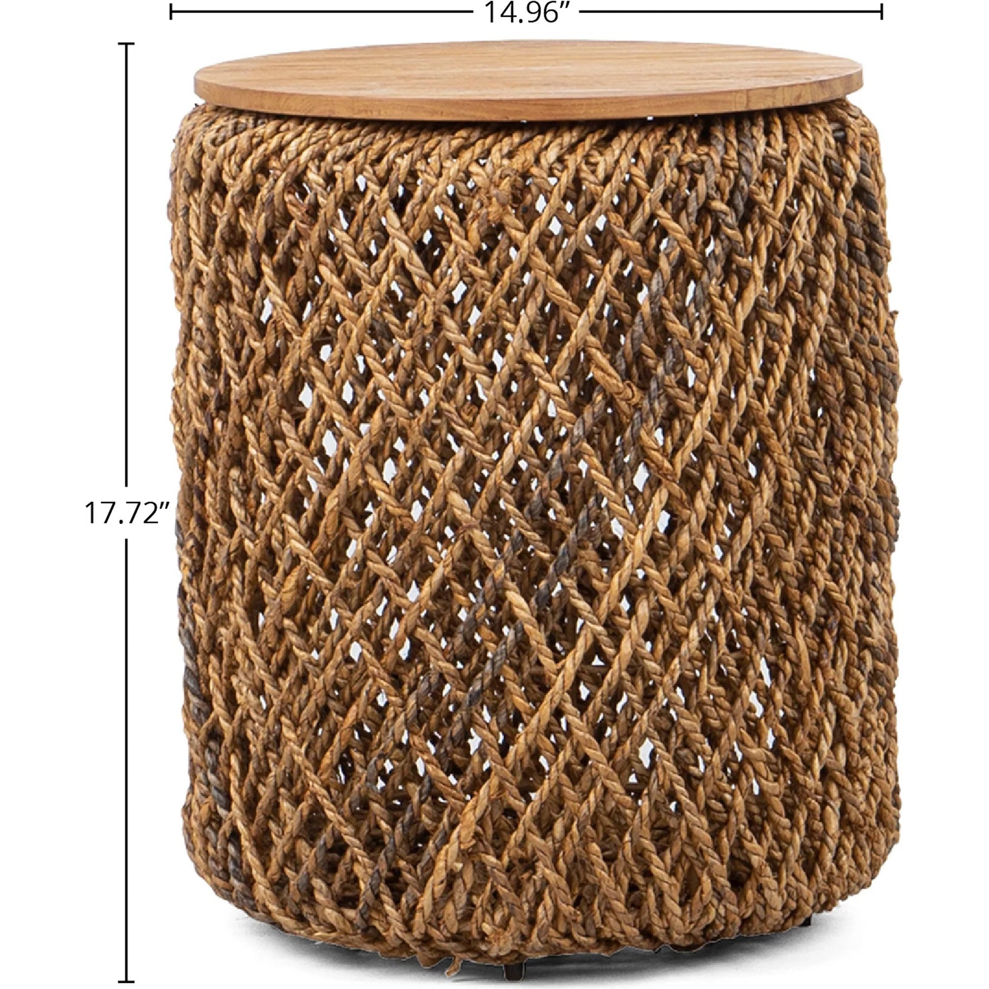Whether you need a sturdy side table, a spare seat or a handy storage container, this piece is for you. The reclaimed teak top can be removed to turn the woven abaca base into a basket. Handcrafted by artisans using sustainably sourced materials, this piece is dual-function and stylishly rustic.