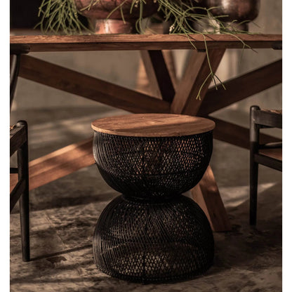Traditional Javanese craftsmanship given new life. Using natural materials, this piece brings a splash of island style to your home. The top is made from reclaimed teak and retains the wood’s natural tones, while the base is woven using customary rattan techniques passed down through generations and coloured a striking black. Sturdy and stylish, this piece is essential for any rustic home setting.