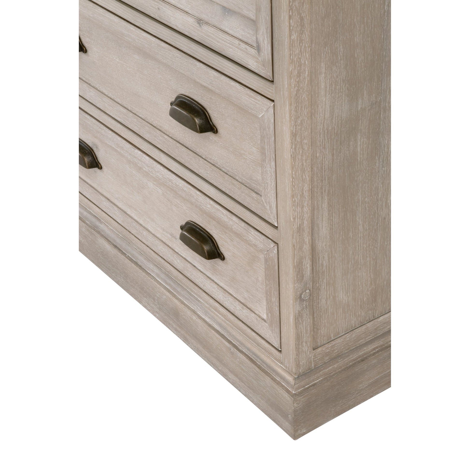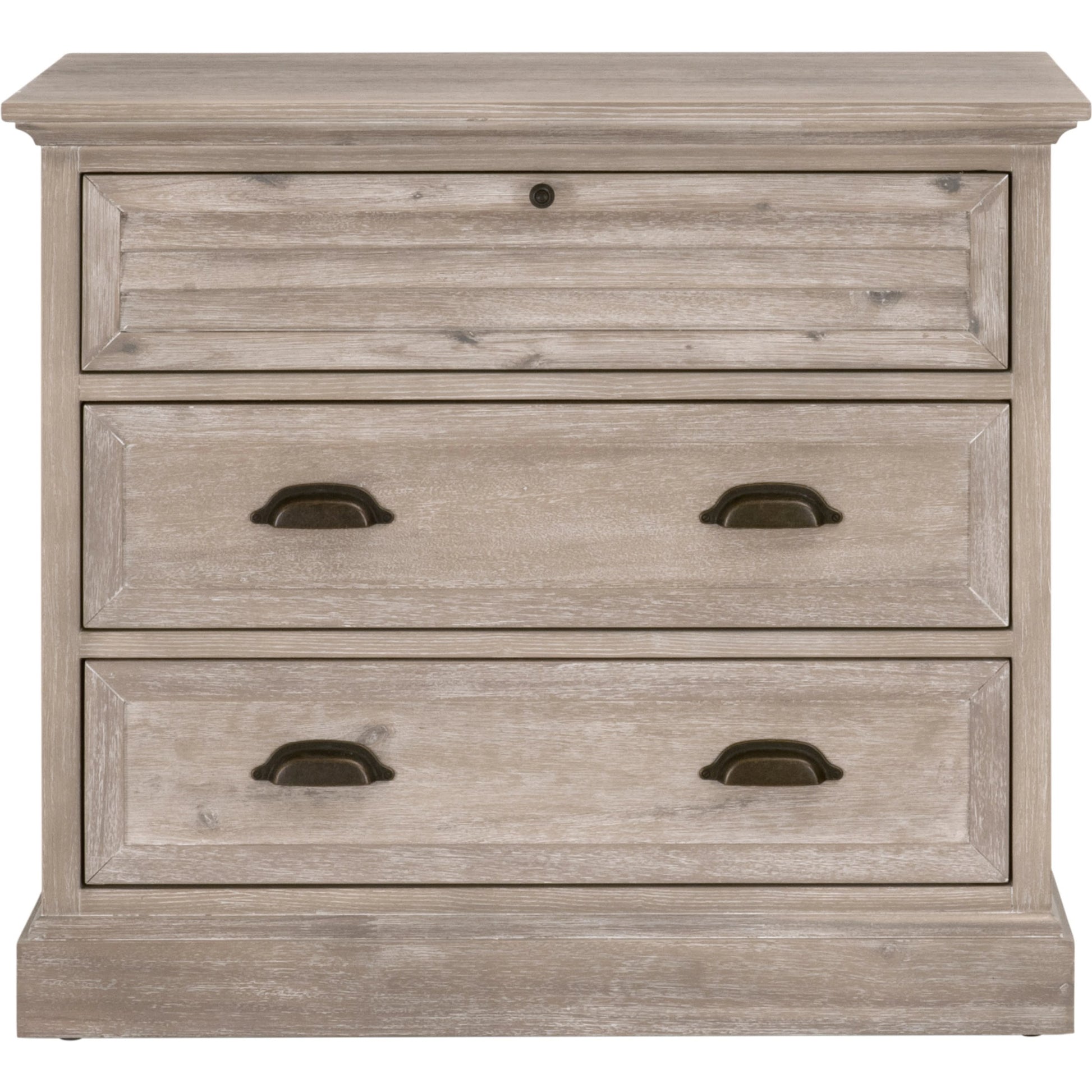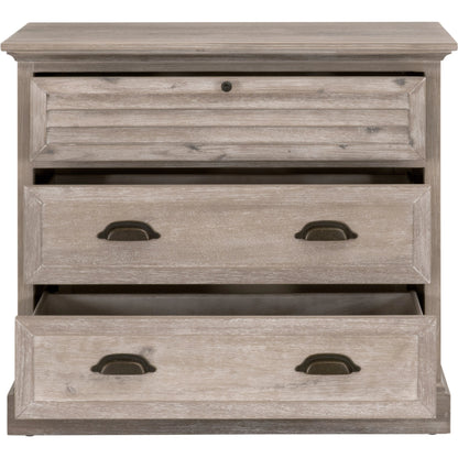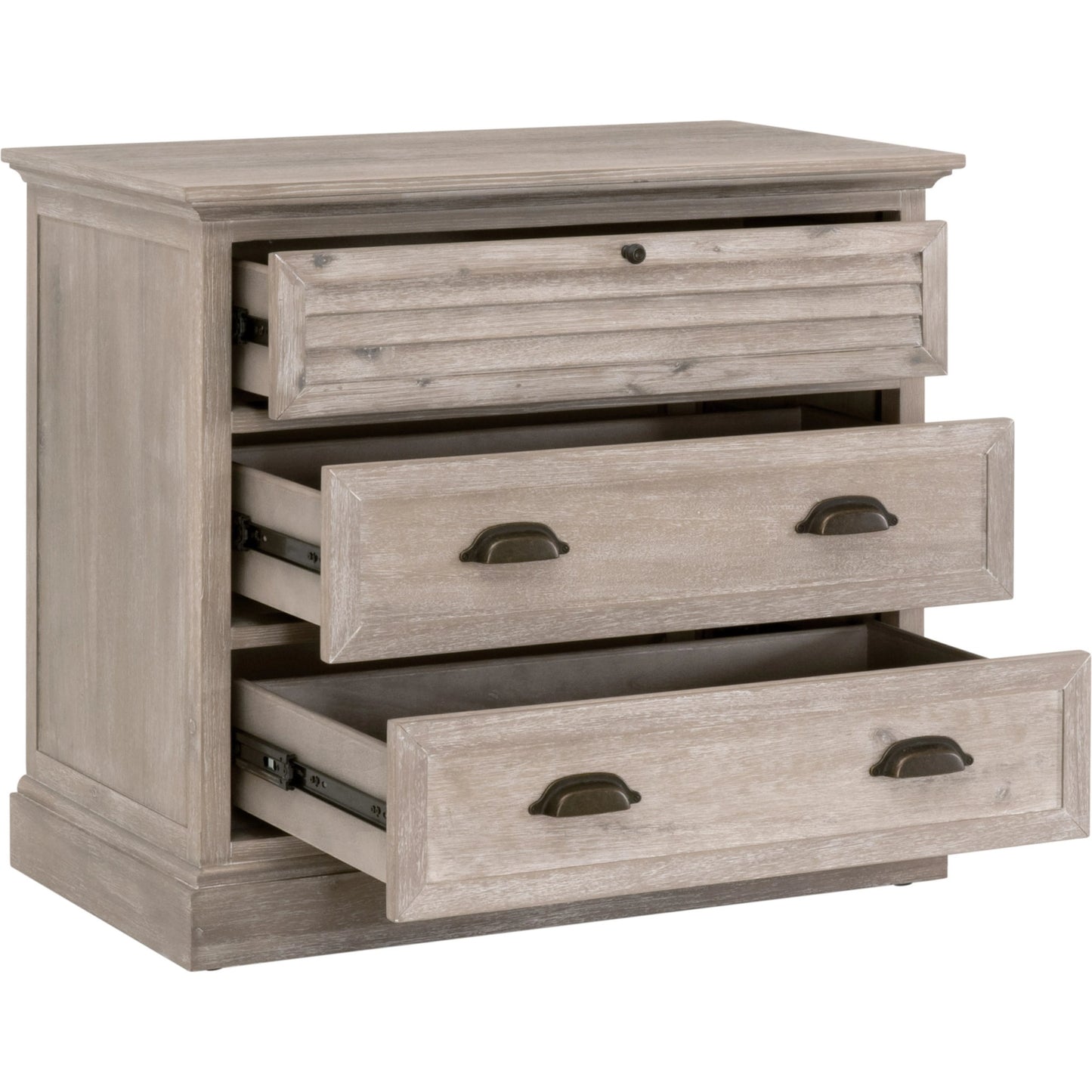 This classic nightstand will be a staple in your home for years to come. Crafted with beautiful acacia wood, the nightstand has a timeless look that will complement many styles and pieces in your bedroom. It supplies ample storage space with a felt-lined drawer at the top and two additional drawers with double handles. The wood contains natural gray undertones and white wood grains for a cool and neutral finish. The top storage drawer is crafted with a slatted design, adding dimension to the front face of the nightstand. This will fit in well with farmhouse, transitional and traditional designs.
