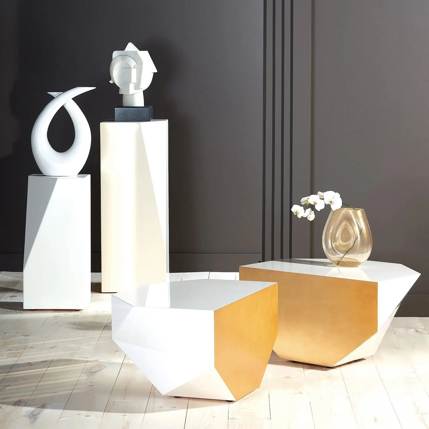 Rectangular form with 1 long facet. MDF with painted finish/hand waxed.