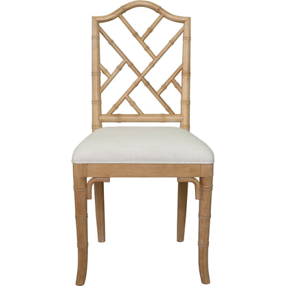 With its Chinese Chippendale styling, the Fairfield side dining chair is a timeless classic in any environment. Bristol's turned, bamboo profile and natural, cerused oak finish evoke an organic look and feel, while its crisp linen upholstered seat offers a cozy perch. A captivating dining chair for both casual and formal settings.