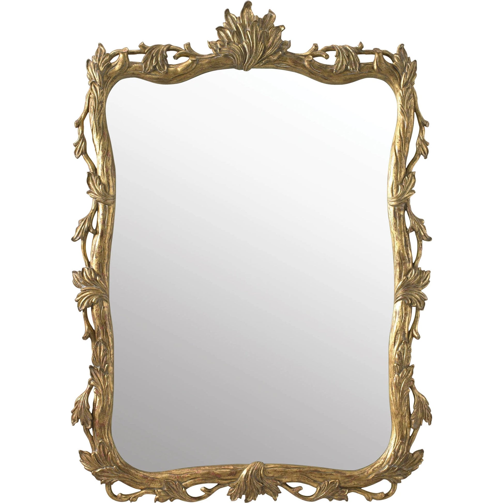 Hand Carved Wooden Mirror with Burnished Gold Finish.