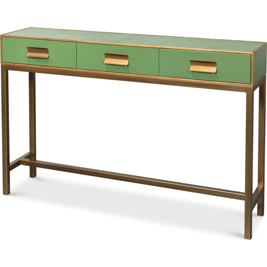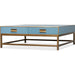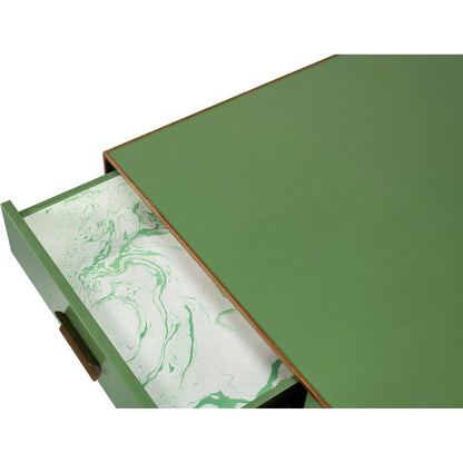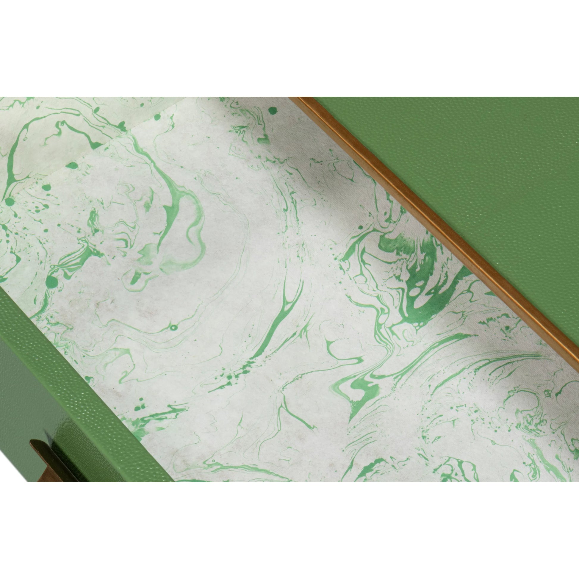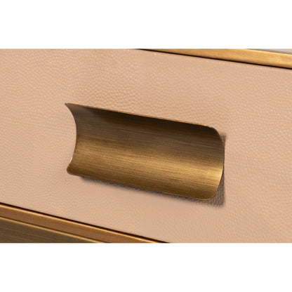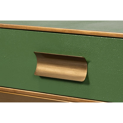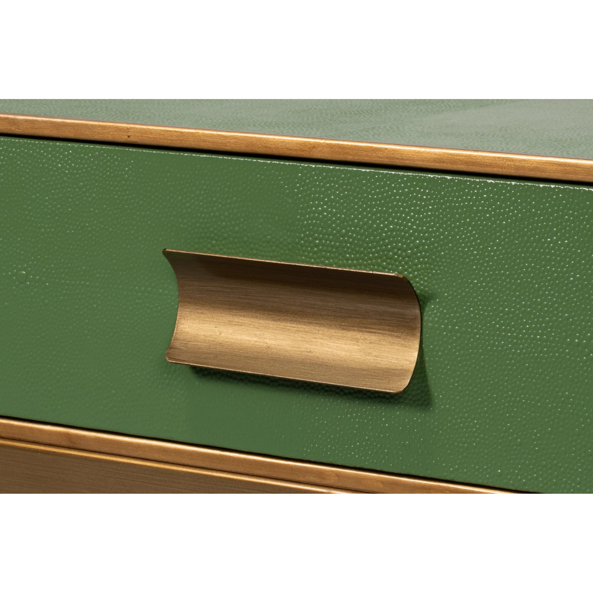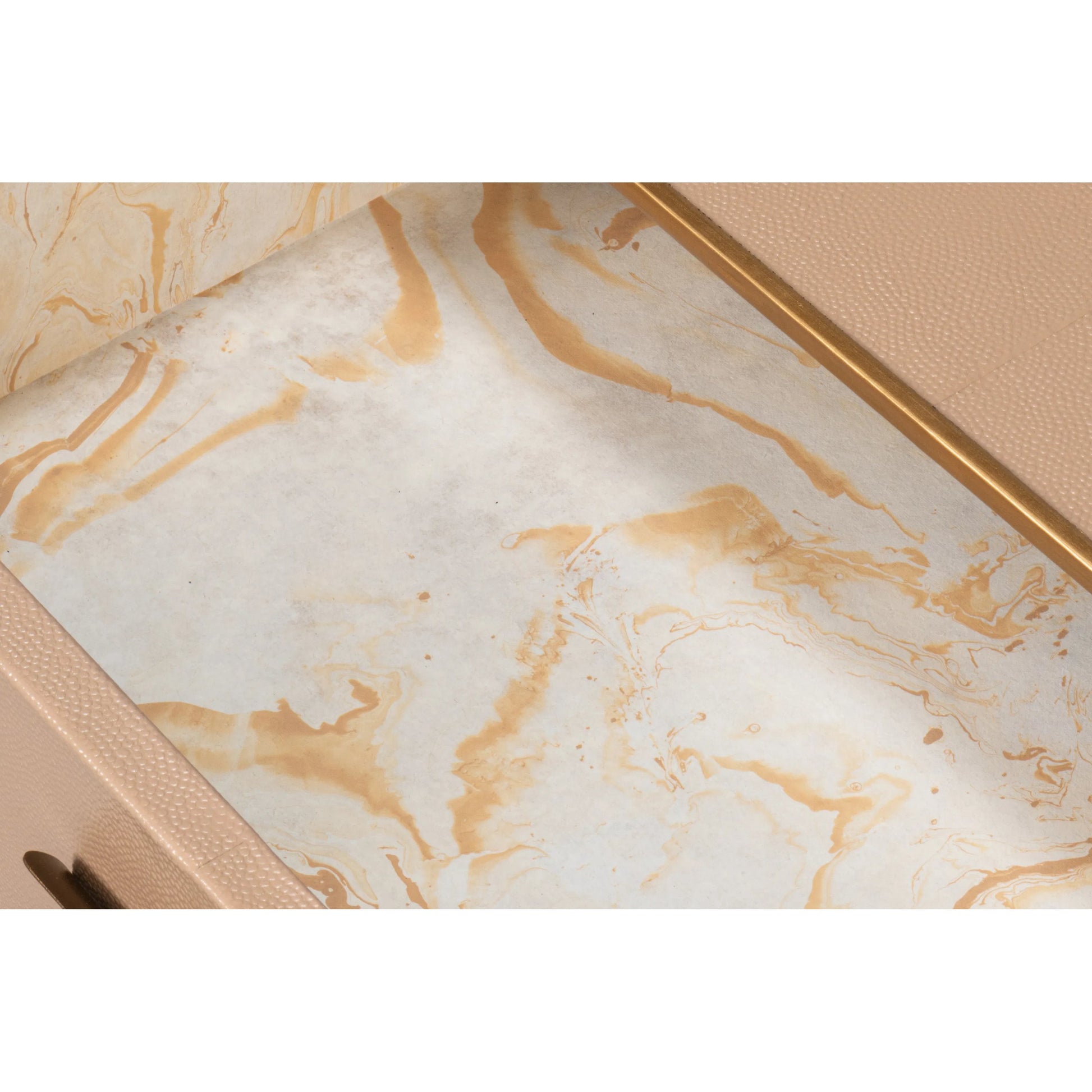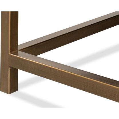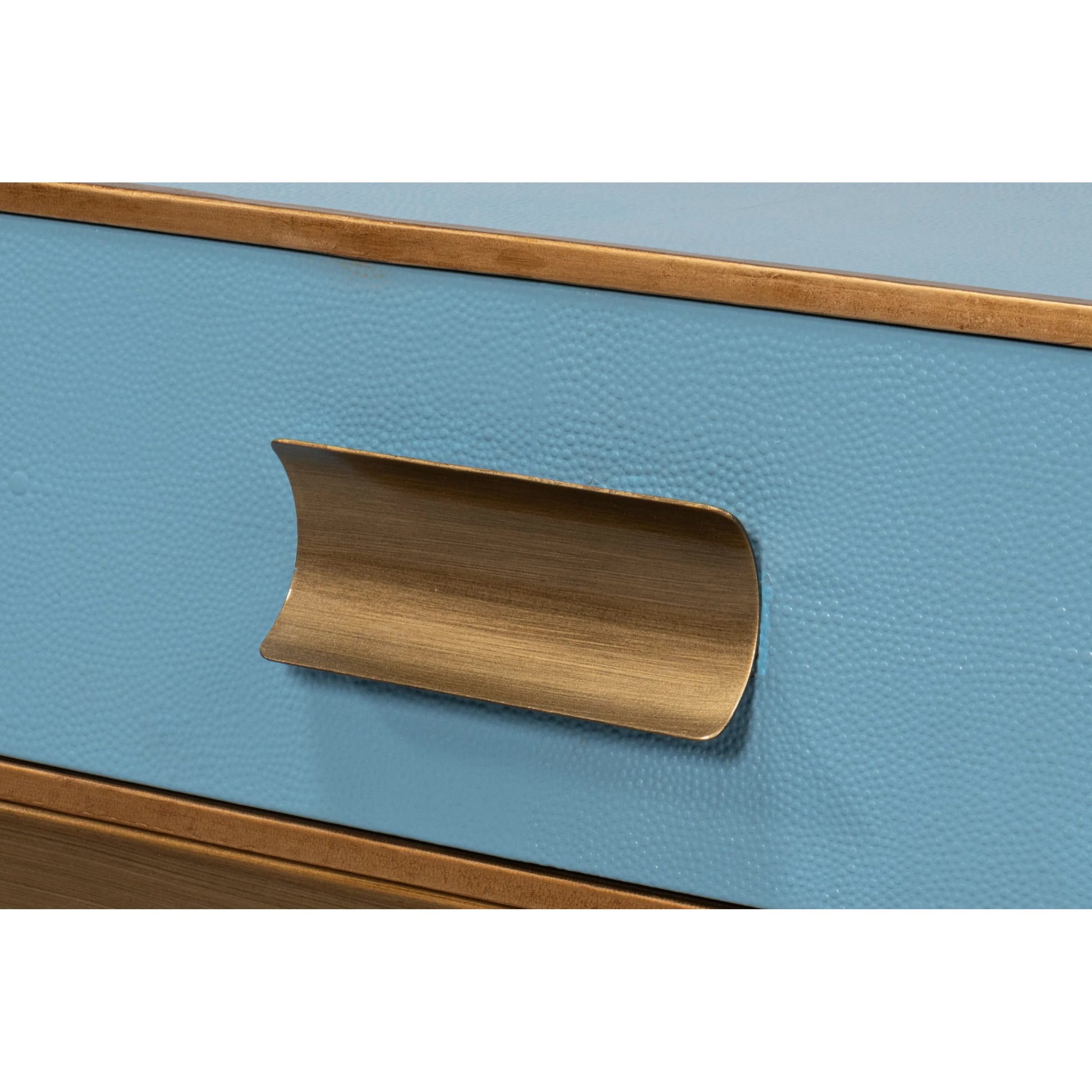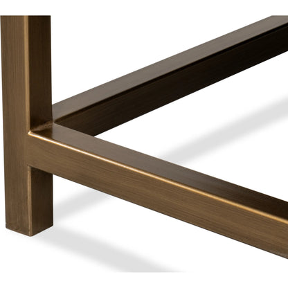 Unveil contemporary love with the Gideon Shagreen Square Coffee Table in Antique Grey. Crafted in wood, adorned with gold leather trim, and brass knobs, it's where romance meets modern sophistication.