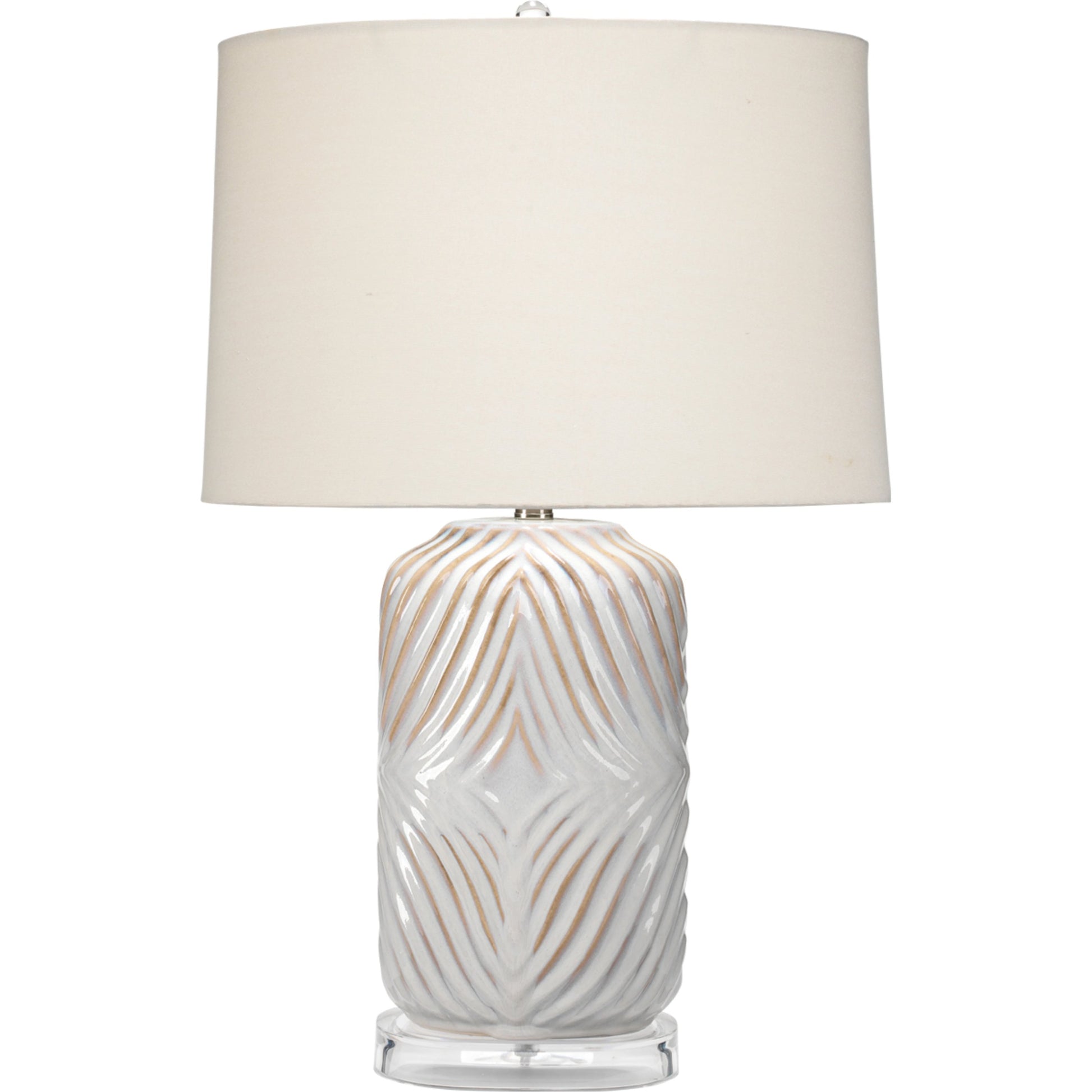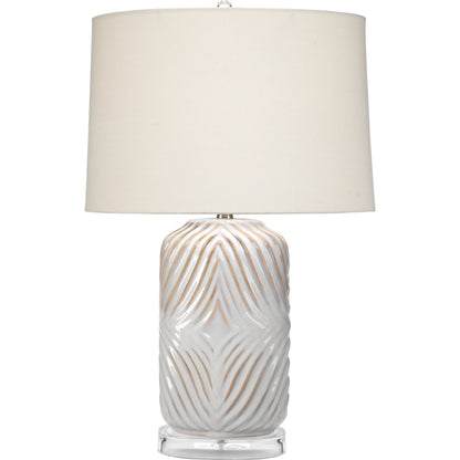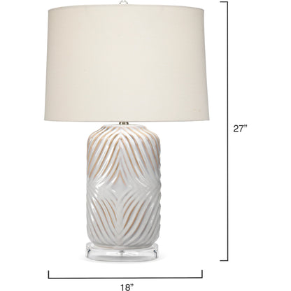 The ceramic lamp has a creamy finish and modern design with soft edges for an interesting shape.