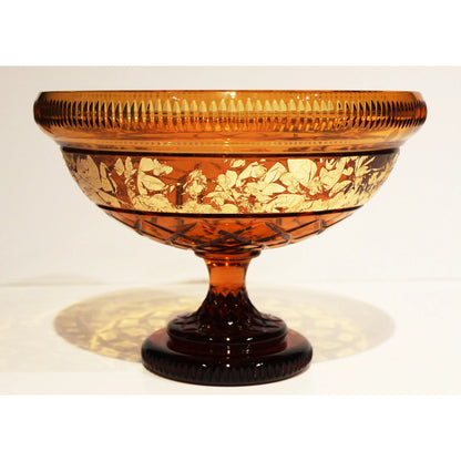 Crystal Amber bowl with hand engraved details, flecked with Gold Leaf.