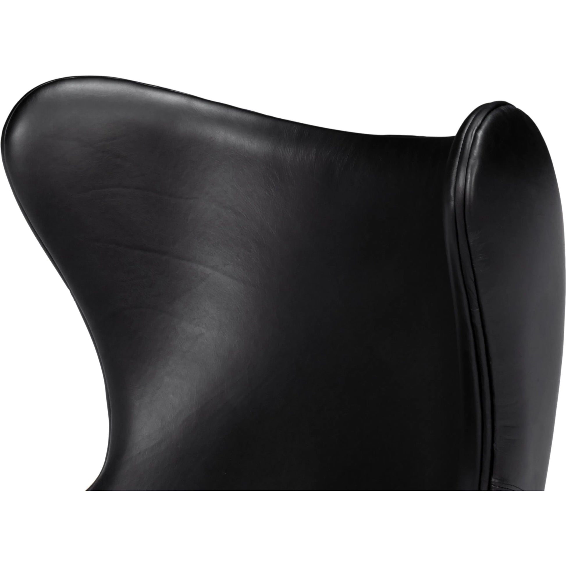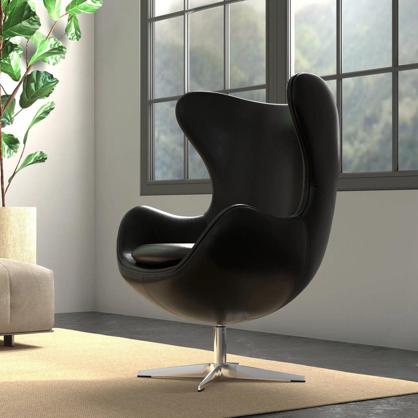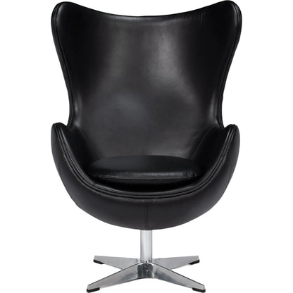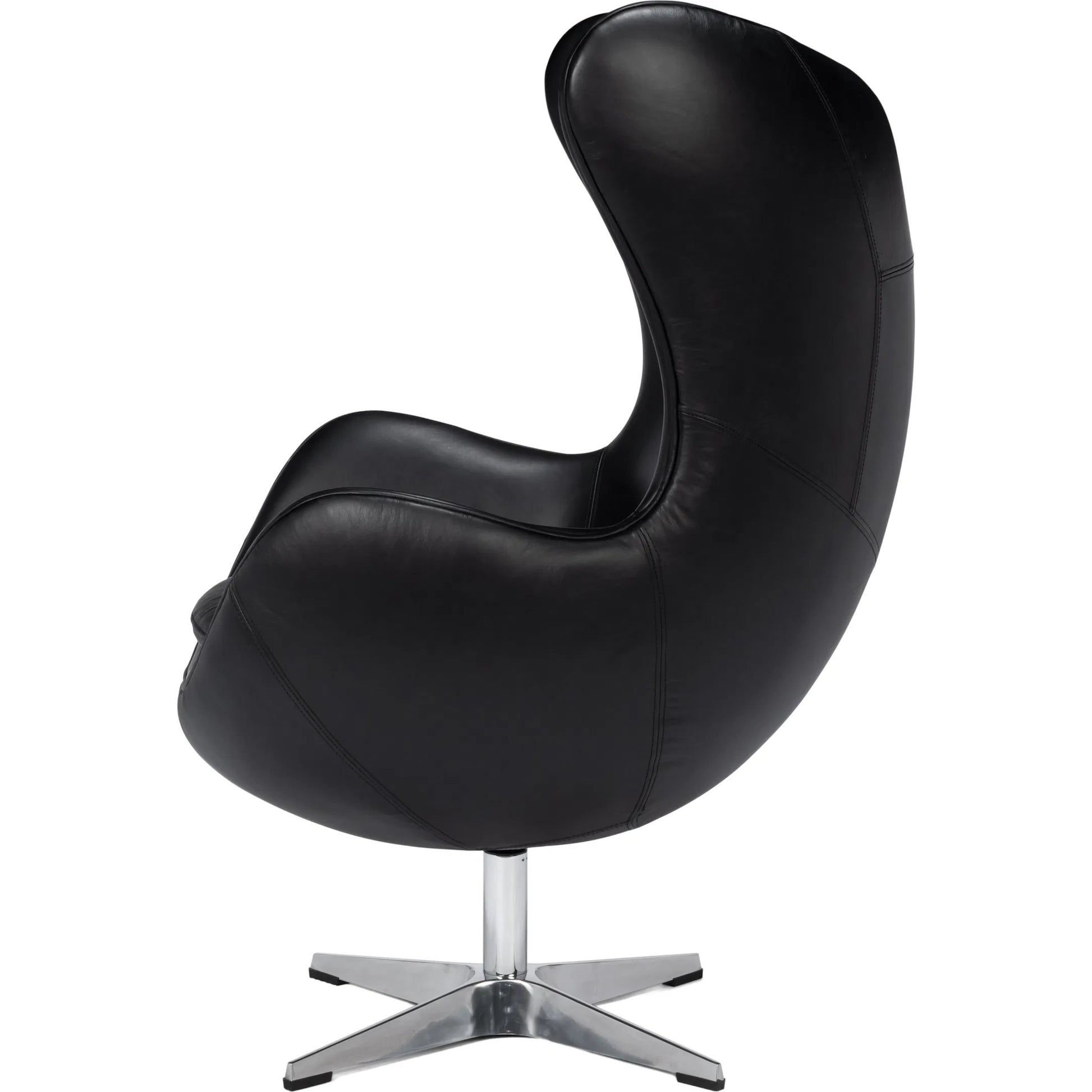 Introducing the Jacobean Mid 20th Century Egg Chair, a contemporary masterpiece. Crafted with a sleek metal frame and upholstered in Onyx Black Leather, it redefines modern elegance, offering both style and comfort in any contemporary setting.