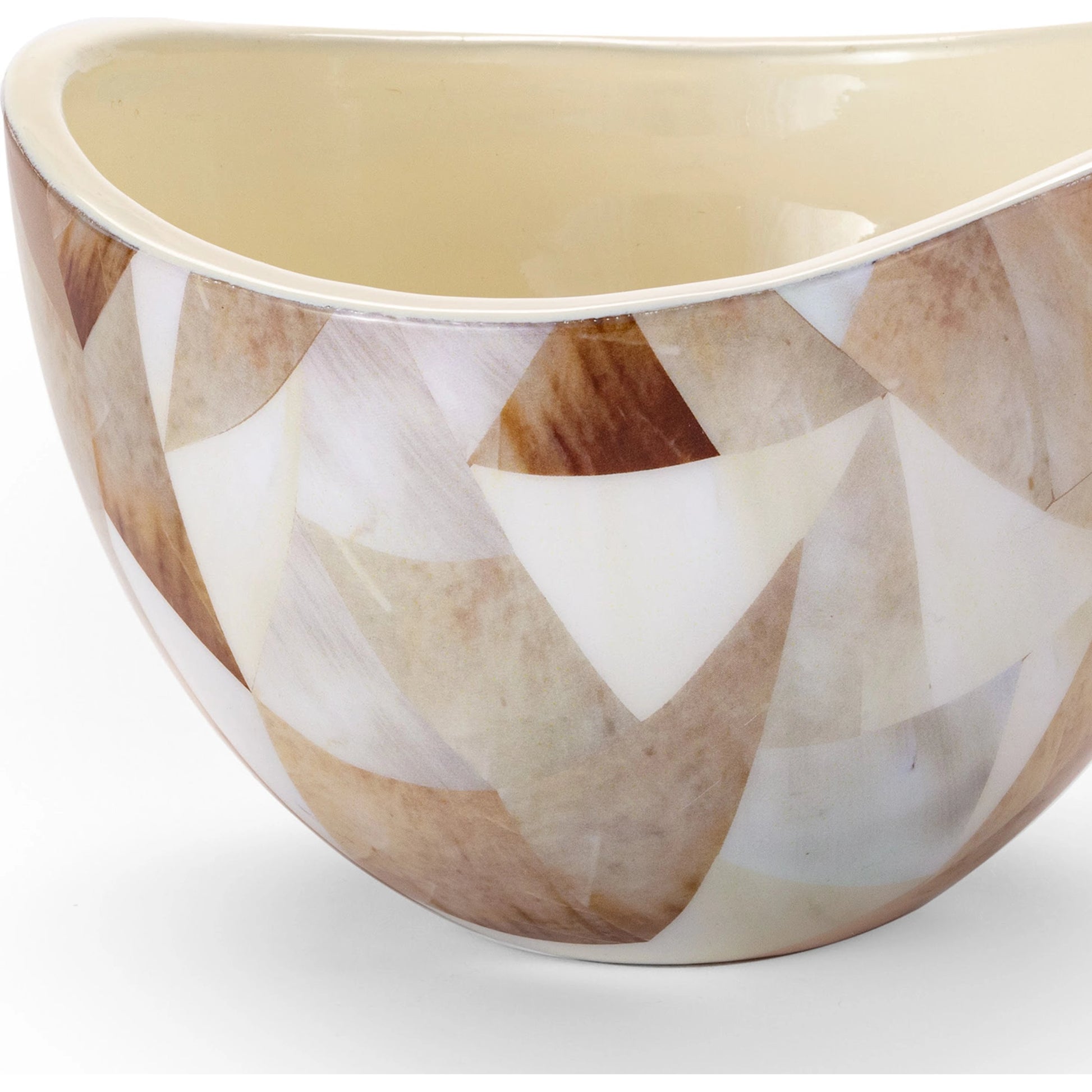 A colorful patchwork defines this enamel resin bowl, hand-polished with a high-gloss finish. Made with an inner substrate of mango wood, the Jake bowl looks great alone or as a trinket catchall.