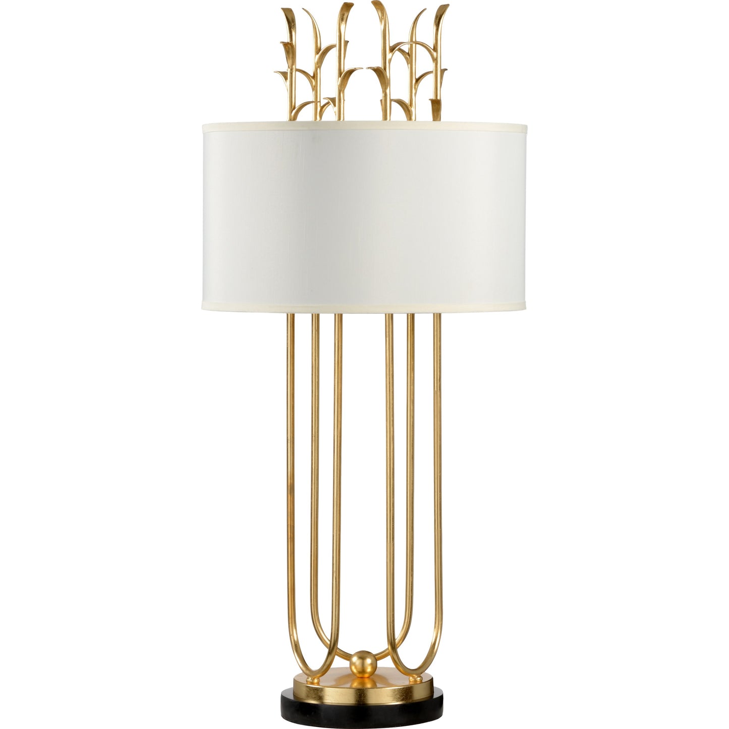 Julianne lamp will bring nature's beauty into your home or office decor. Gold leaf finished iron is mounted on a natural black marble base. The off white silkette drum shade encirlces the gold leaf "branches" forming a unique table lamp. Display in a sunroom or living area for ambient illumination.