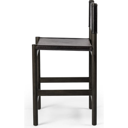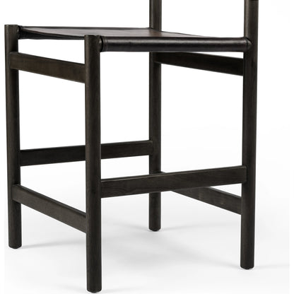 Solid parawood forms a simple, vintage-inspired frame for sling-style seating of black top-grain leather exclusive to Four Hands. Perfectly sized for the counter.
