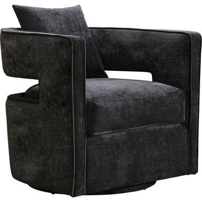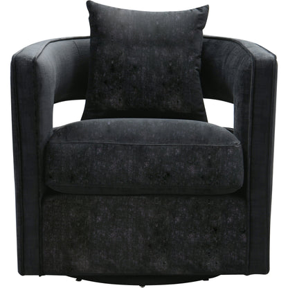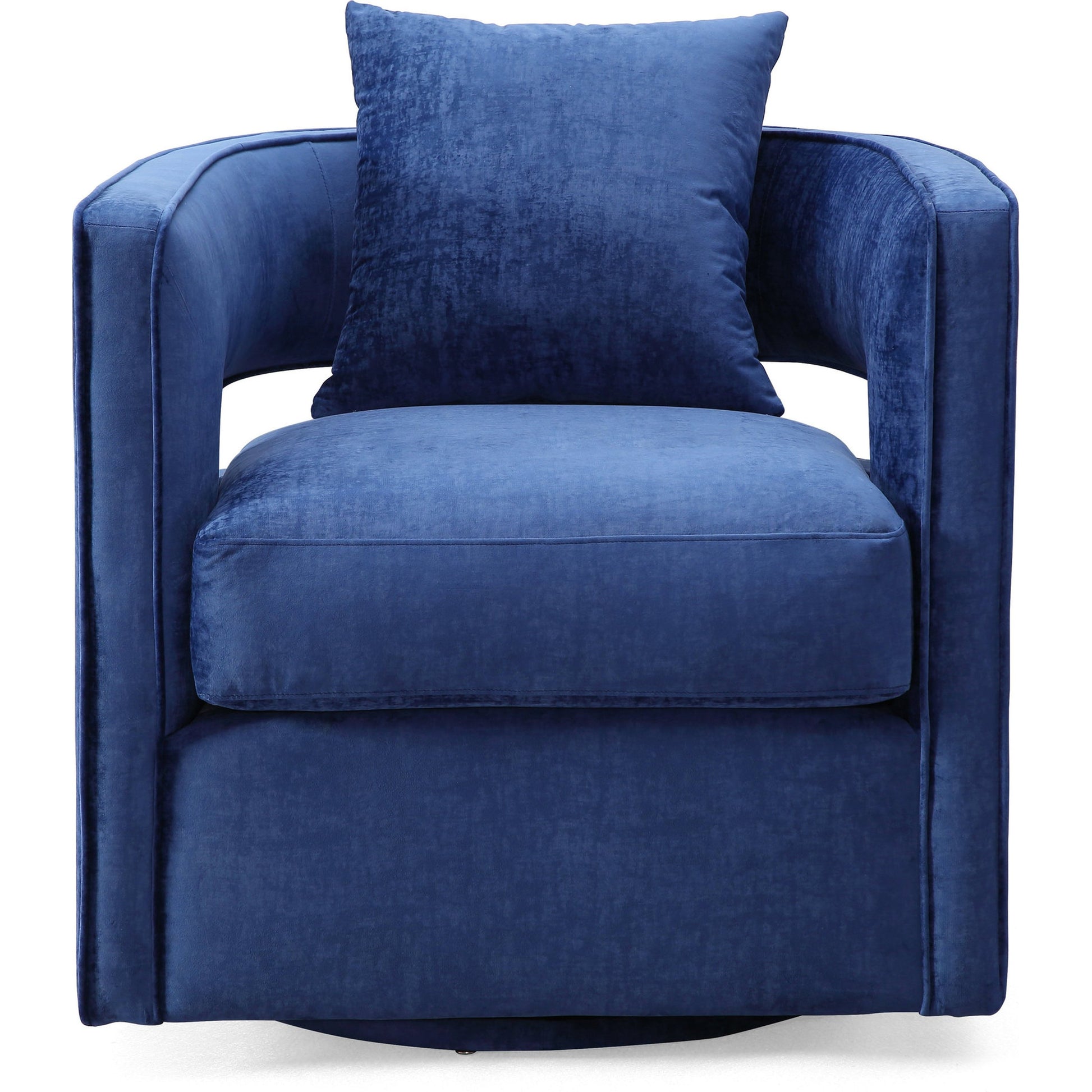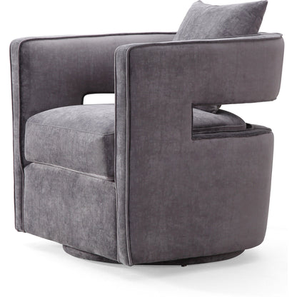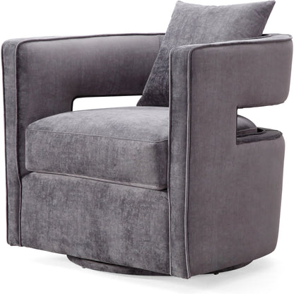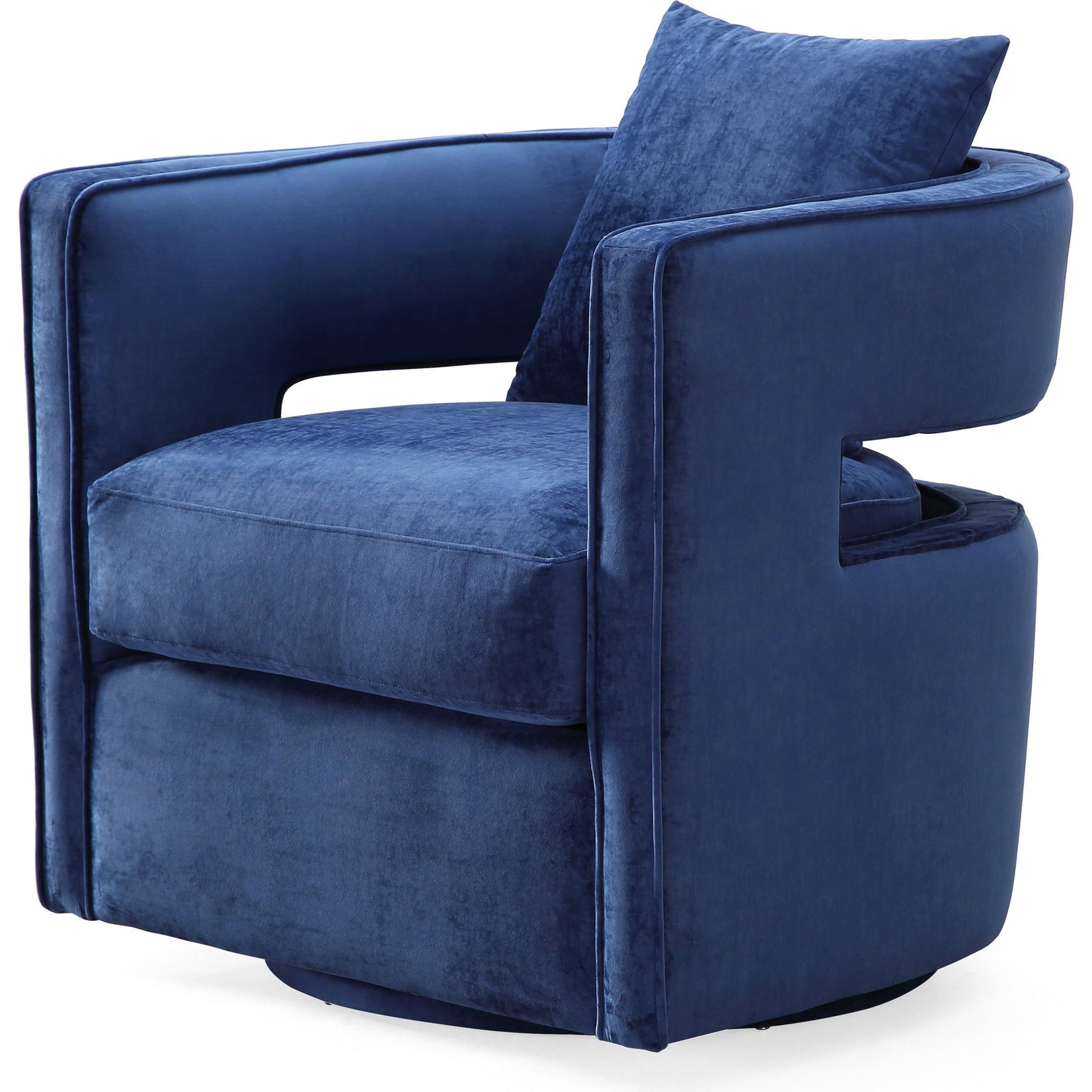 Our minimalistic Kennedy swivel chair is versatile and stylish. A comfortable foam fill makes it as plush and inviting as it looks, while the solid wood frame and stainless steel legs set a sturdy foundation. This eye-catching chair will add a pop of style to any space. Available in navy or grey sumptuous velvet.