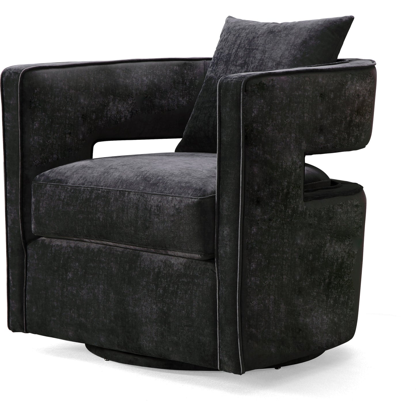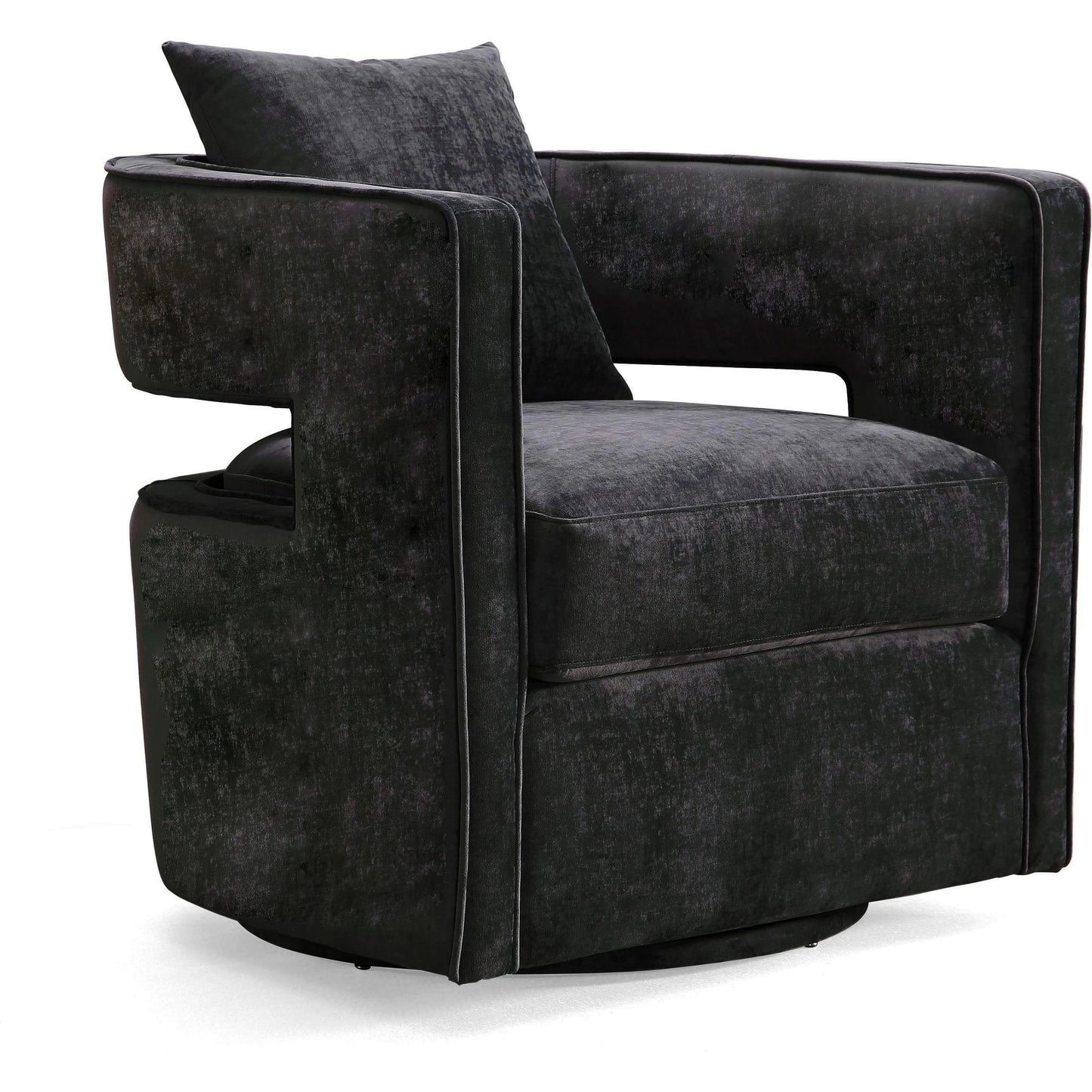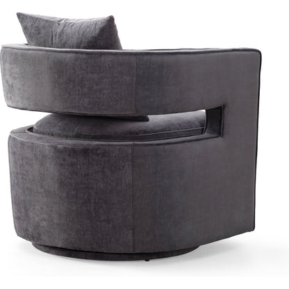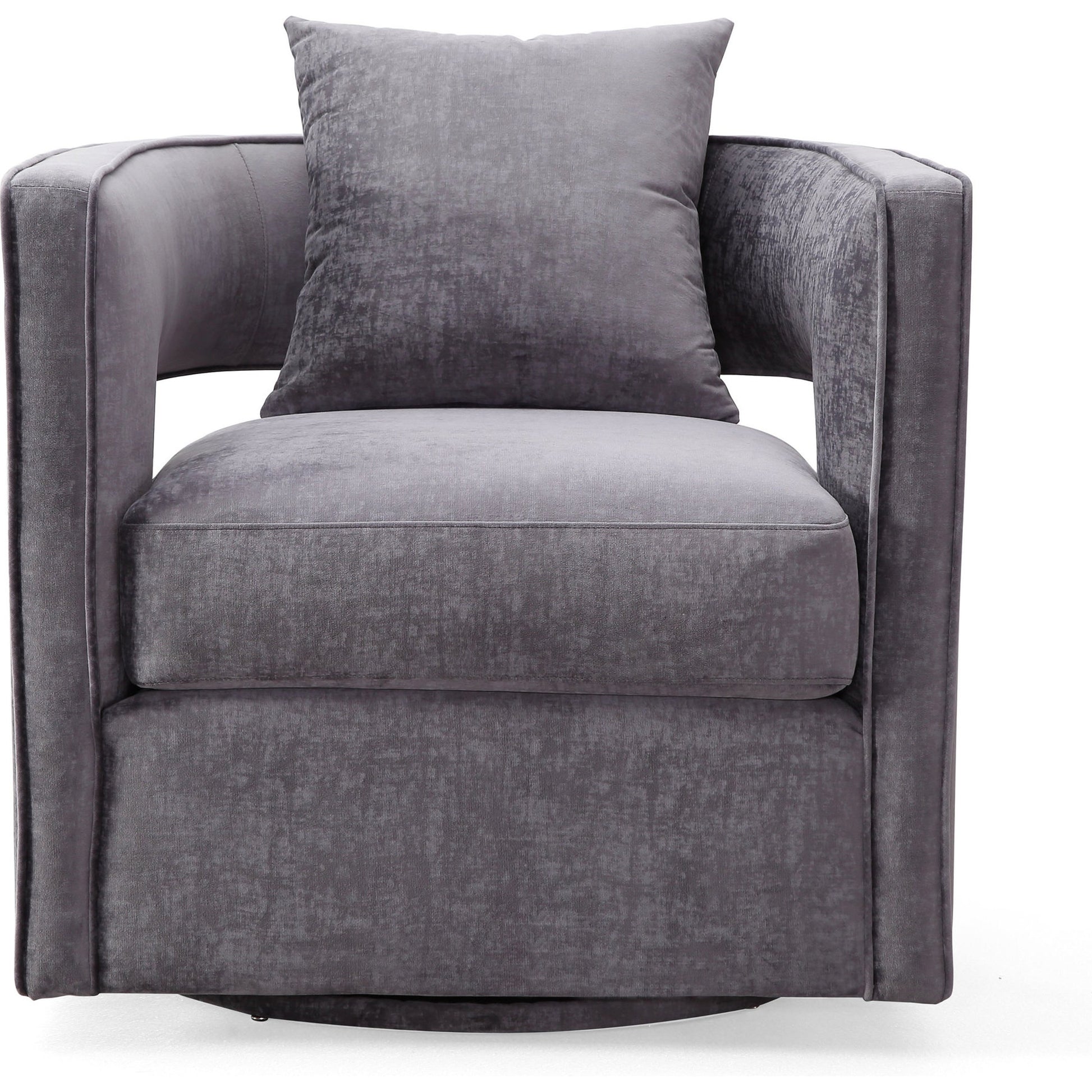 Our minimalistic Kennedy swivel chair is versatile and stylish. A comfortable foam fill makes it as plush and inviting as it looks, while the solid wood frame and stainless steel legs set a sturdy foundation. This eye-catching chair will add a pop of style to any space. Available in navy or grey sumptuous velvet.