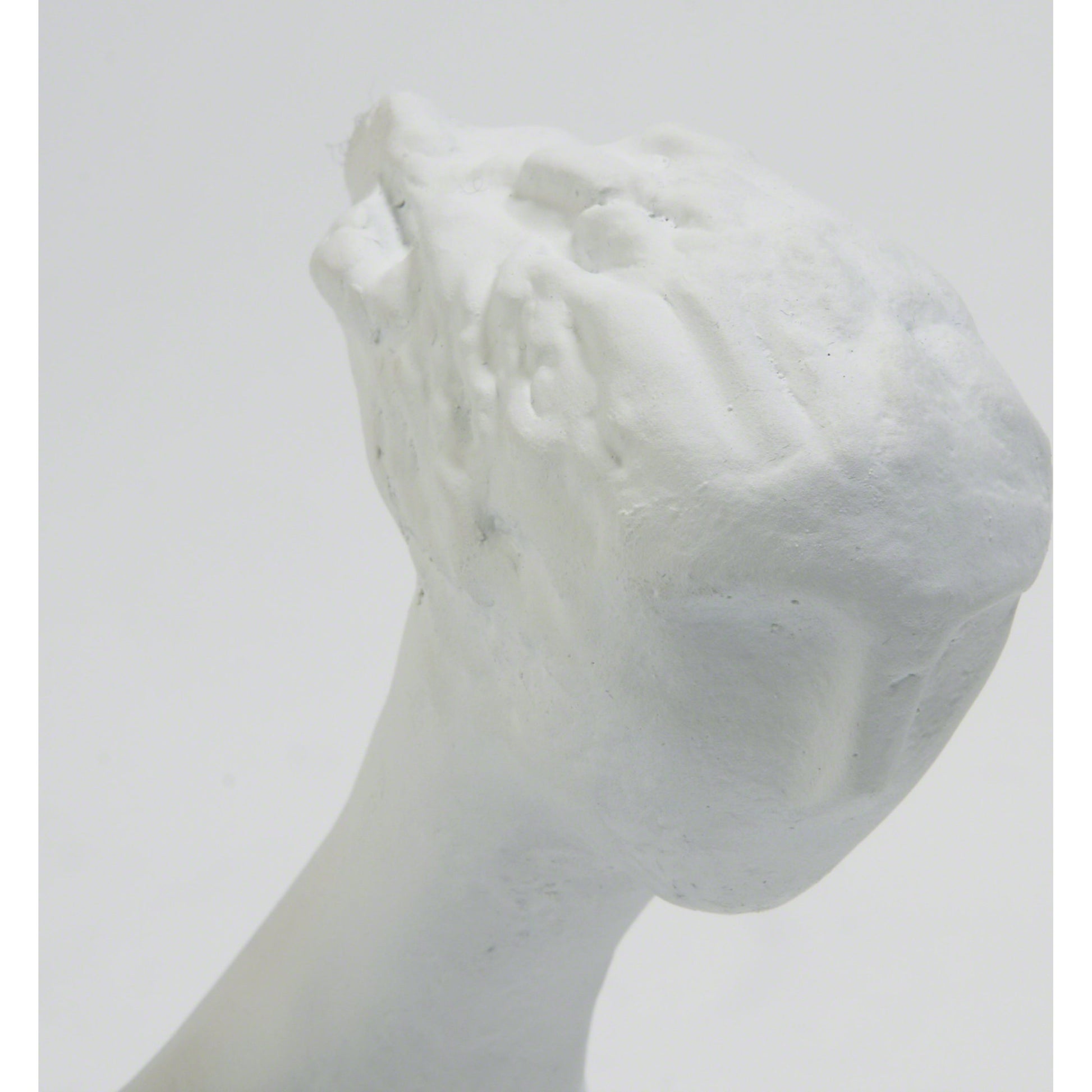 Literally meaning "The Bathing Lady", this sculpture is taken from a whimsically sensual depiction by the newly-discovered Parisian sculptor, Francois-Rene Bergeron, designed in the late 1970s. It is elegant and playful. Cast in a biodegradable, eco-friendly stone composite containing no resin. French White Plaster finish.