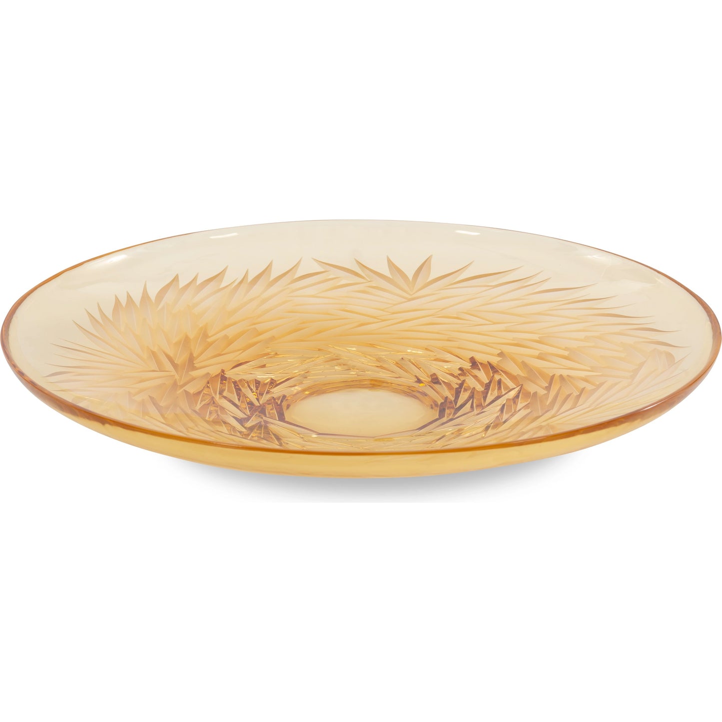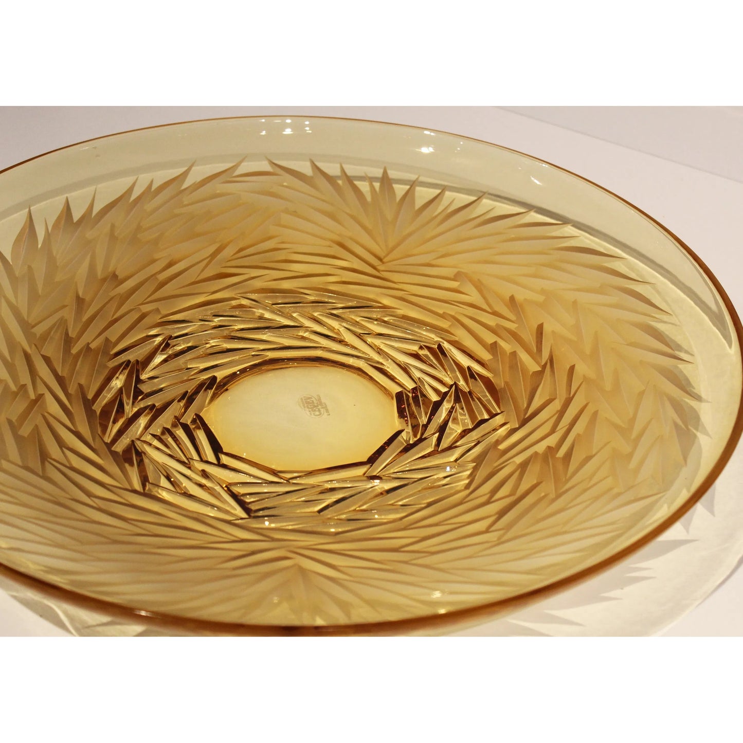 Crystal Amber dish features hand engraved bevels, mimicking the natural swirl of a bird’s nest.
