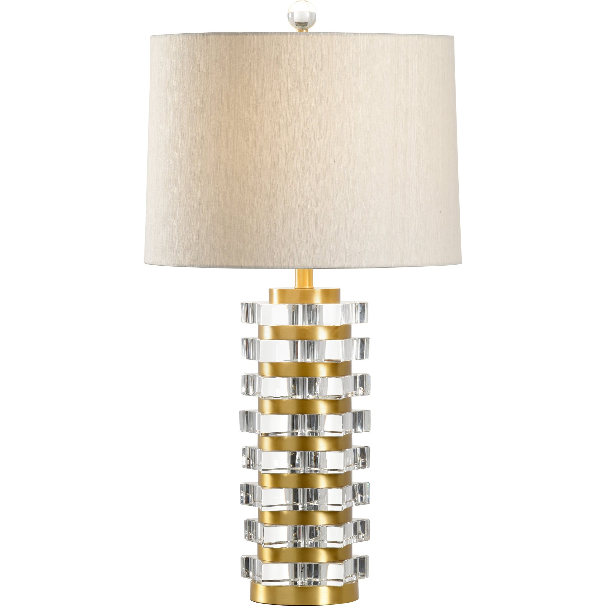 Clear crystal and antique brass stacked lamp with antique brass mounting