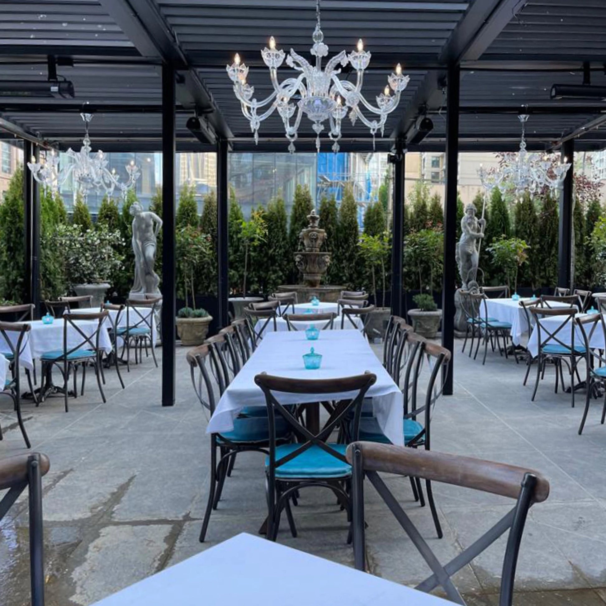 These metal cross back chairs aren't just for sitting in style, but also durable