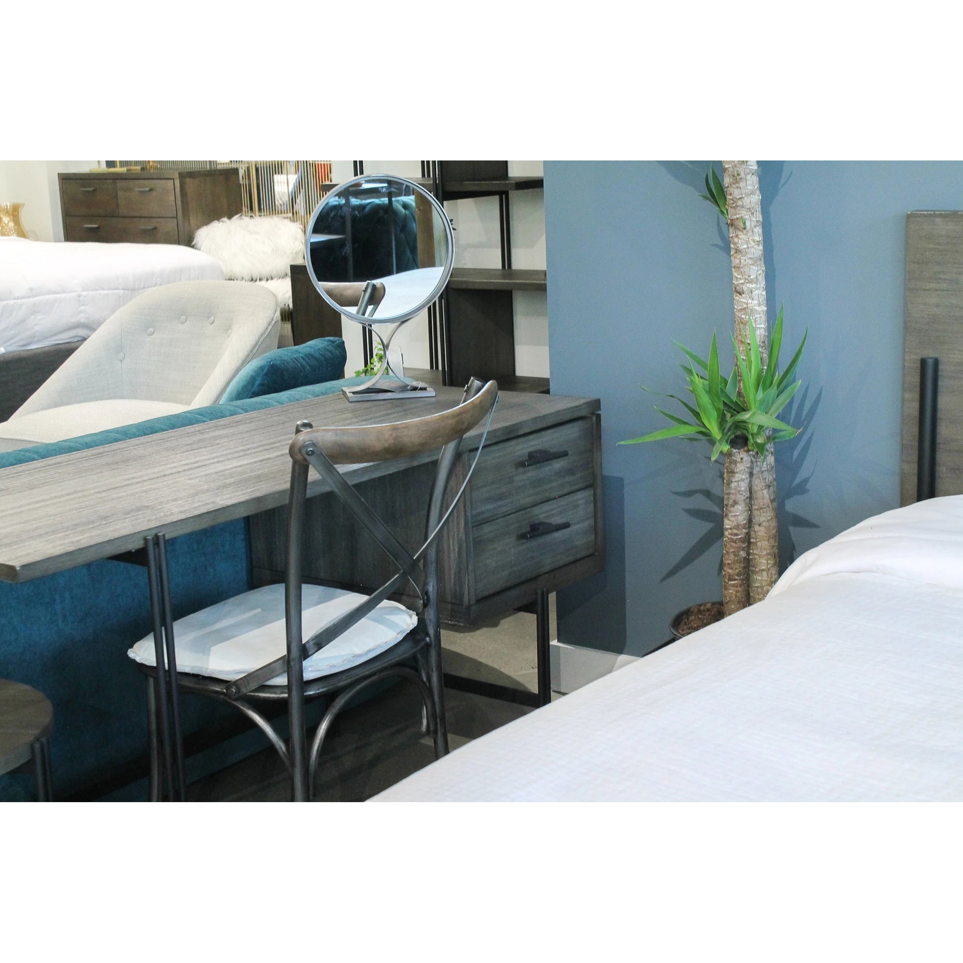 - Iron frame with Oak wood accents